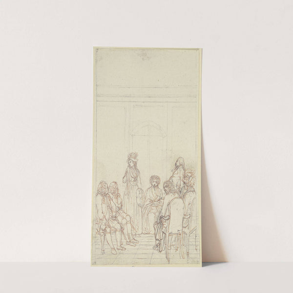 Clarissa steht, in Hut und Umhang, inmitten ihrer Verwandten by Daniel Nikolaus Chodowiecki - Wall Art Print