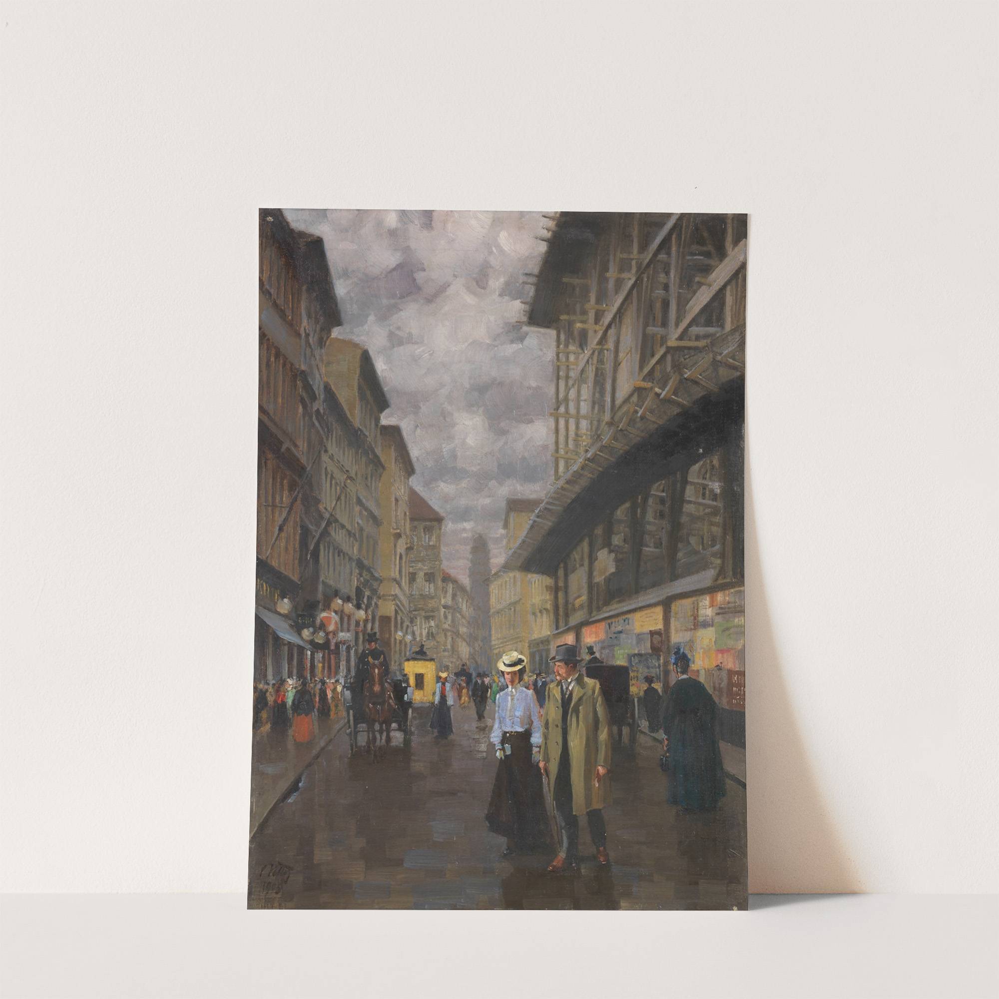 Münchner Weinstraße mit Blick Richtung Theatinerkirche, rechts die Baugerüste des Rathauses by Charles Vetter - Wall Art Print
