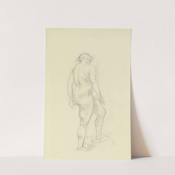Stehender weiblicher Akt nach rechts, den Oberkörper vom Betrachter abgewandt, den linken Fuß auf einer Erhebung abstellend by Wilhelm Rietschel - Wall Art Print
