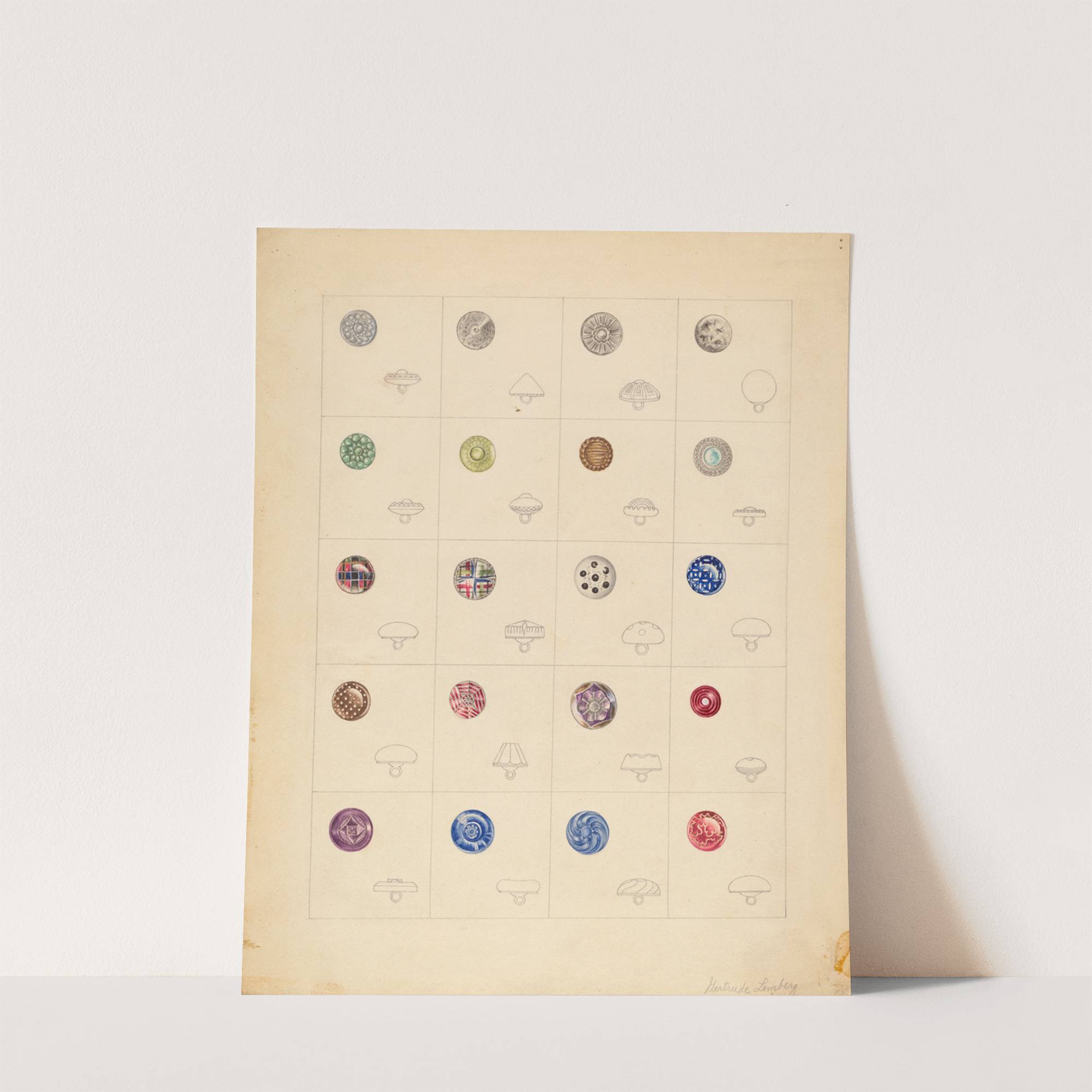 Buttons by Gertrude Lemberg - Wall Art Print
