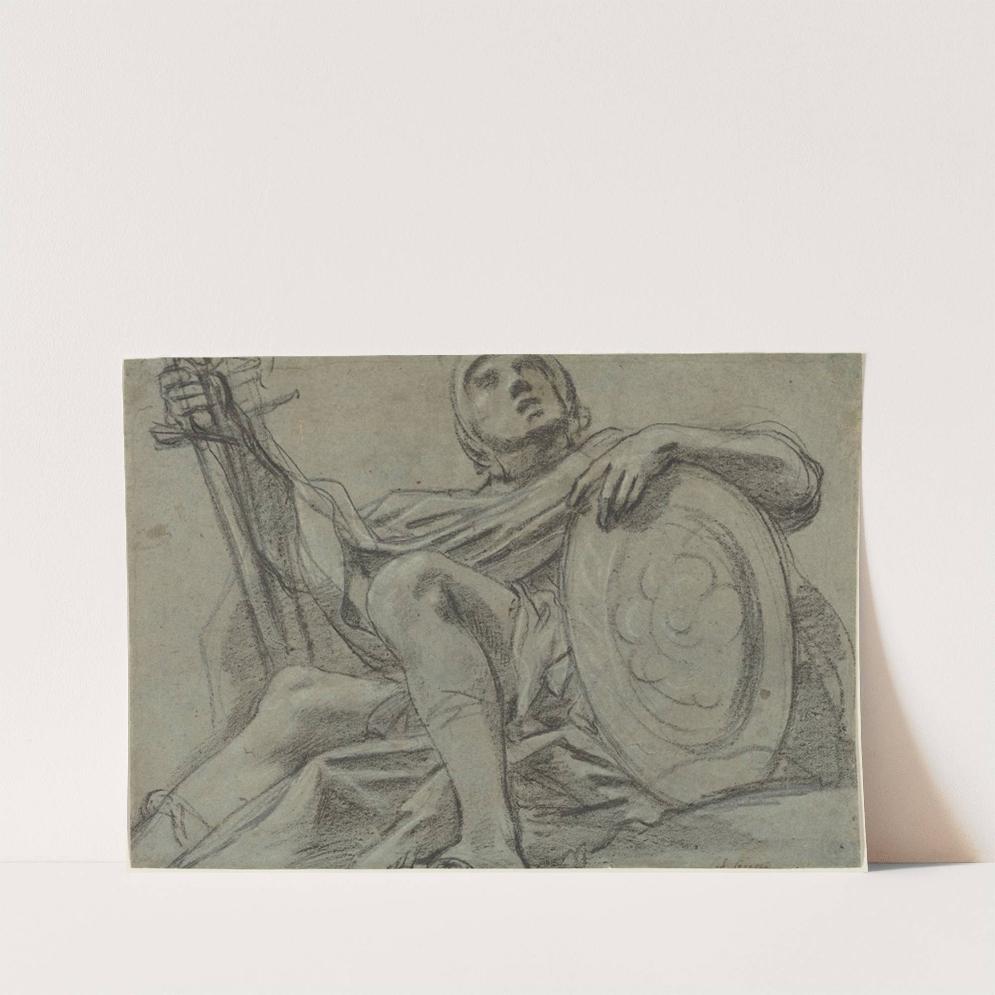Seated Warrior Holding a Sword and Shield (recto) by Giacomo Cavedone - Wall Art Print
