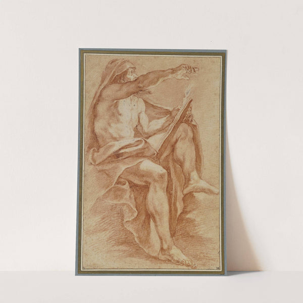 Sitzender Prophet mit Buch im Kerzenschein nach rechts deutend by Giacomo Cavedone - Wall Art Print