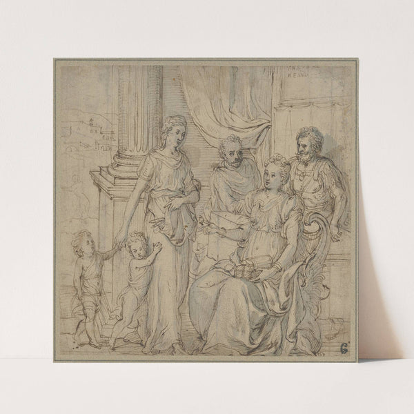 Cornelia, Mother of the Gracchi, Pointing to her Children as her Most Precious Ornaments by Gillis Mostaert - Wall Art Print