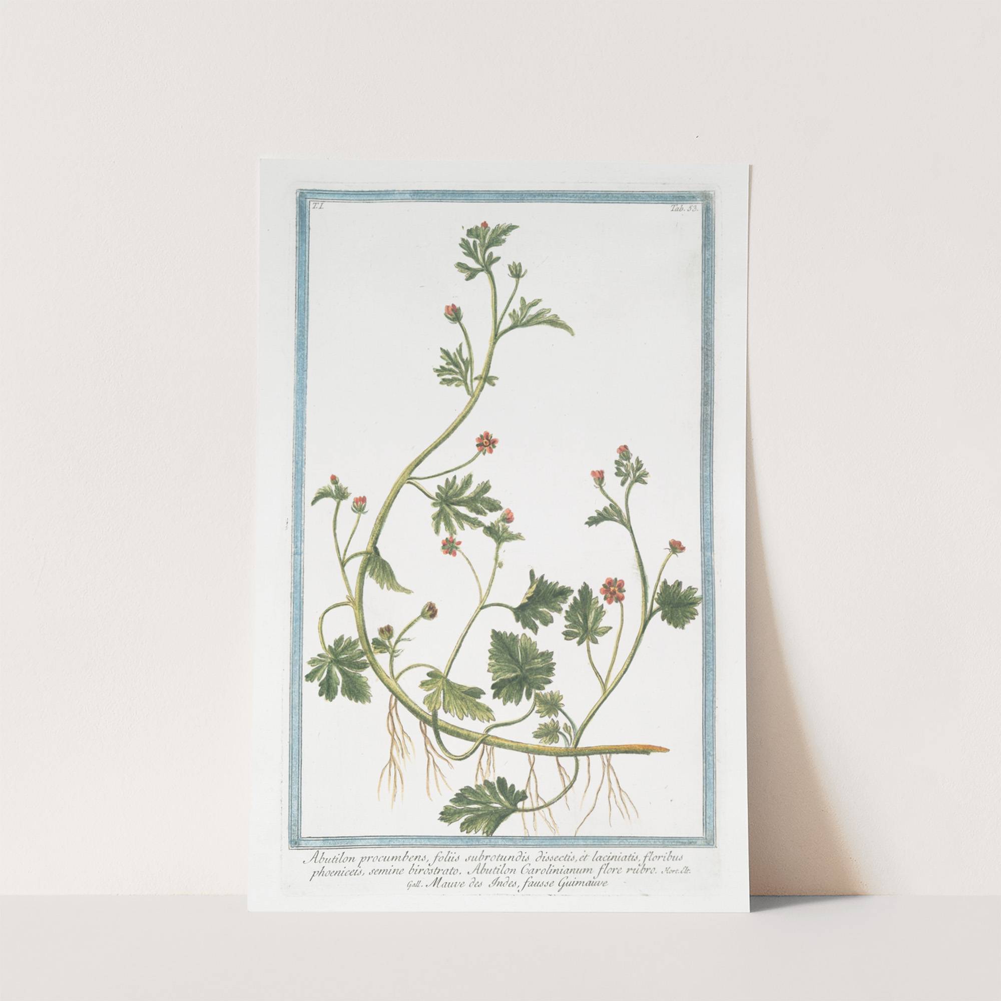 Abutilon procumbens, foliis subrotundis dissectis, et laciniatis, floribus phoeniceis, semine birostrato. Abutilon Carolinianum flore rubro – Mauve des Indes, fausse Guimmauve by Giorgio Bonelli - Wall Art Print