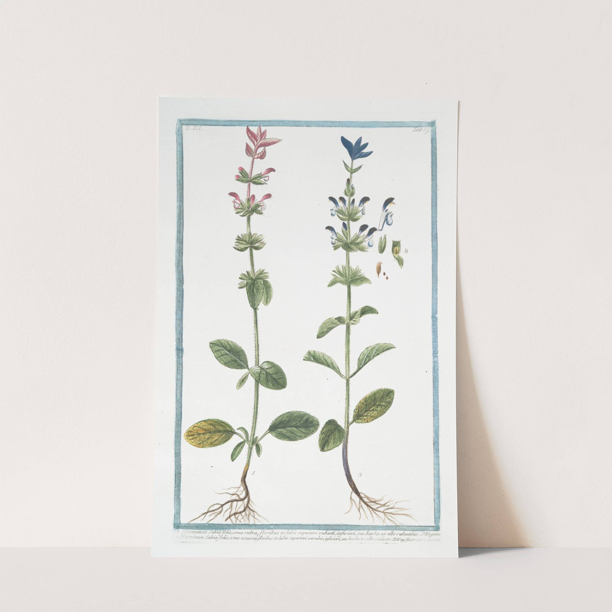 Horminum Salviæ foliis, coma rubra, floribus in labio superiori rubenti, inferiori, seu barba ex albo rubentibus … (Annual Sage) by Giorgio Bonelli - Wall Art Print