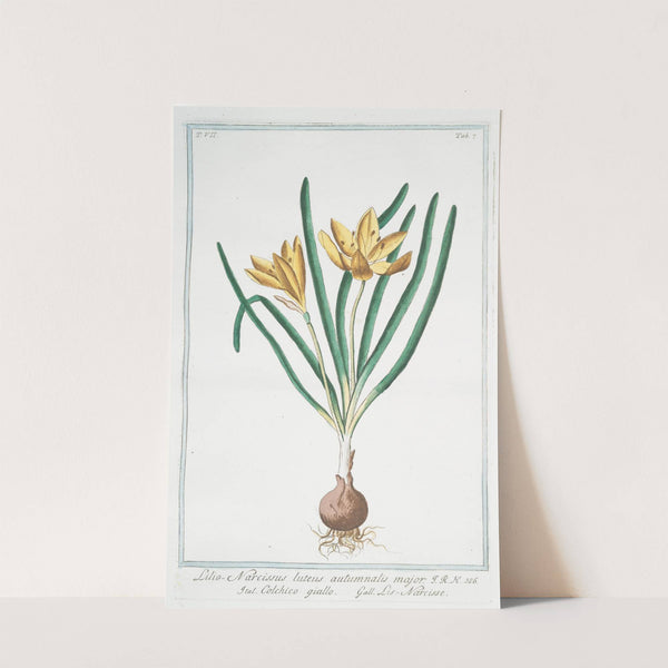 Lilio-narcissus, luteus, autumnalis major – Colchico giallo – Lis-narcisse. (colchicum; autumn crocus; fall crocus) by Giorgio Bonelli - Wall Art Print