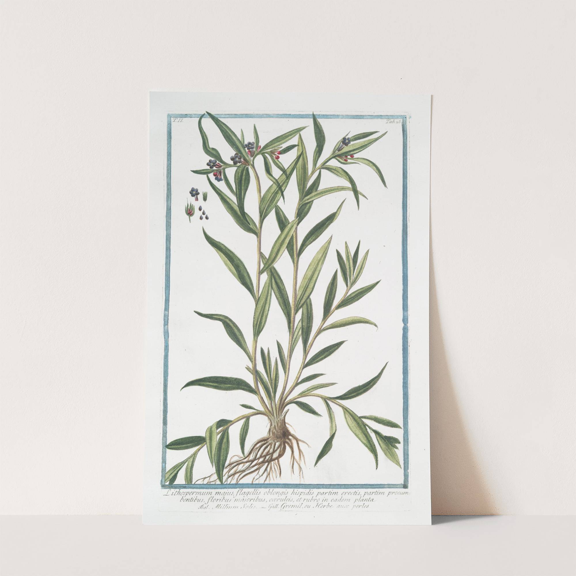 Lithospermum majus, flagellis oblongis hispidis partim erectis, partim procumbentibus, floribus majoribus, cæruleis, en eadem palnta – Millium Solis – Gremil, ou Herbe aux perles. (Puccoon) by Giorgio Bonelli - Wall Art Print