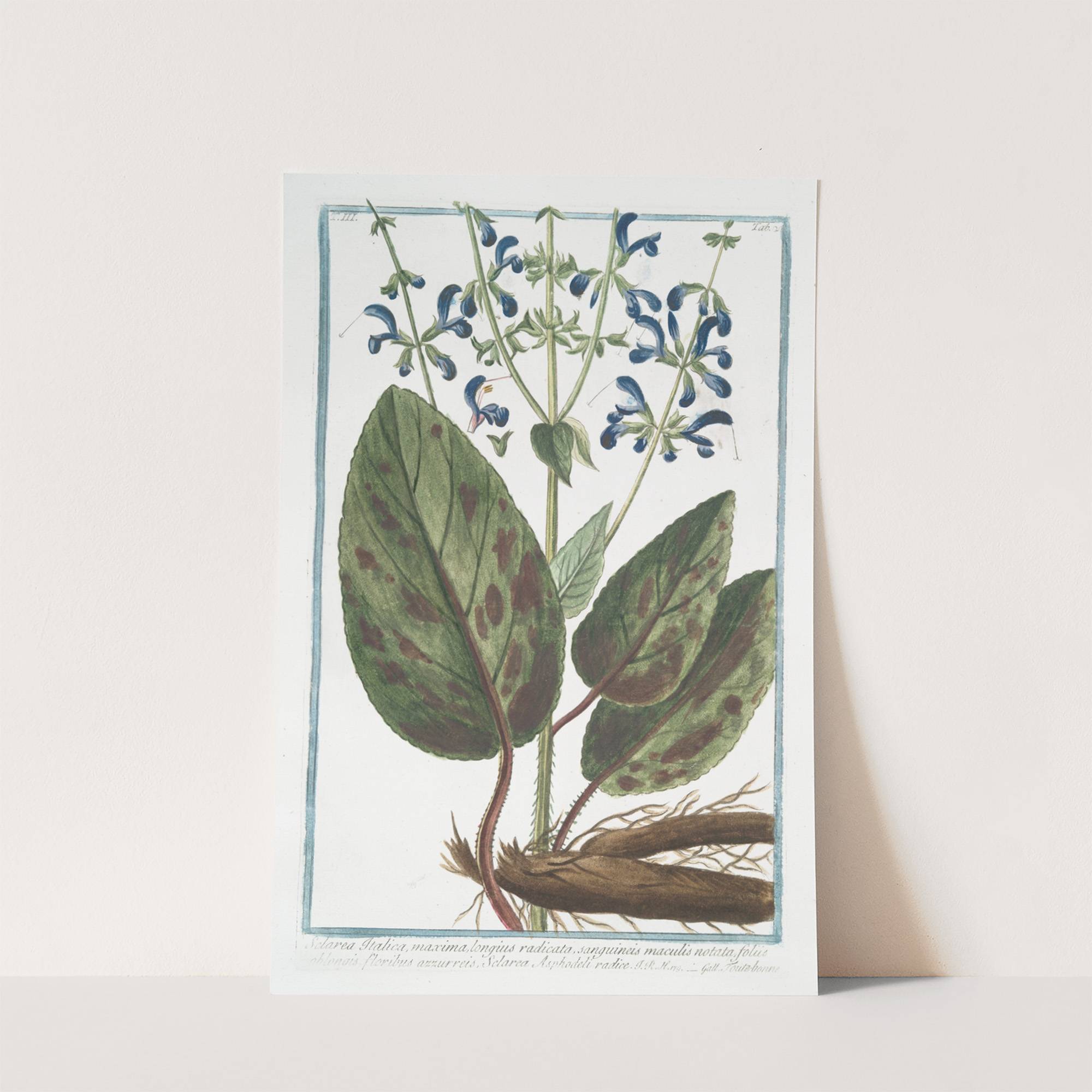 Sclaria Italica, maxima, longius radicata, sanguineis maculis notata, foliis oblongis, floribus azzurreis, Sclarea Asphodeli radice – Toute-bonne. (Clary-sage) by Giorgio Bonelli - Wall Art Print