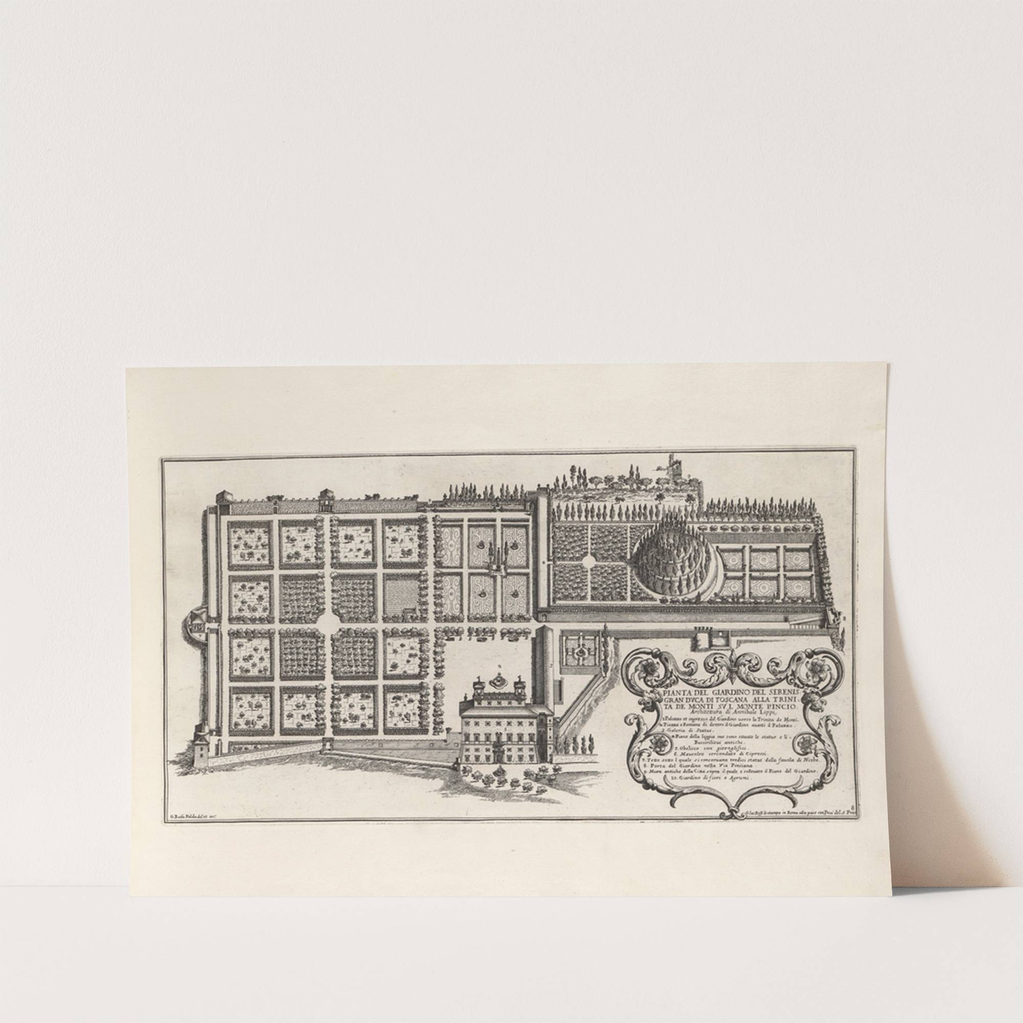 Li giardini di Roma: con le loro piante, alzate e vedvte in prospettiva Pl.07 by Giovanni Battista Falda  - Wall Art Print