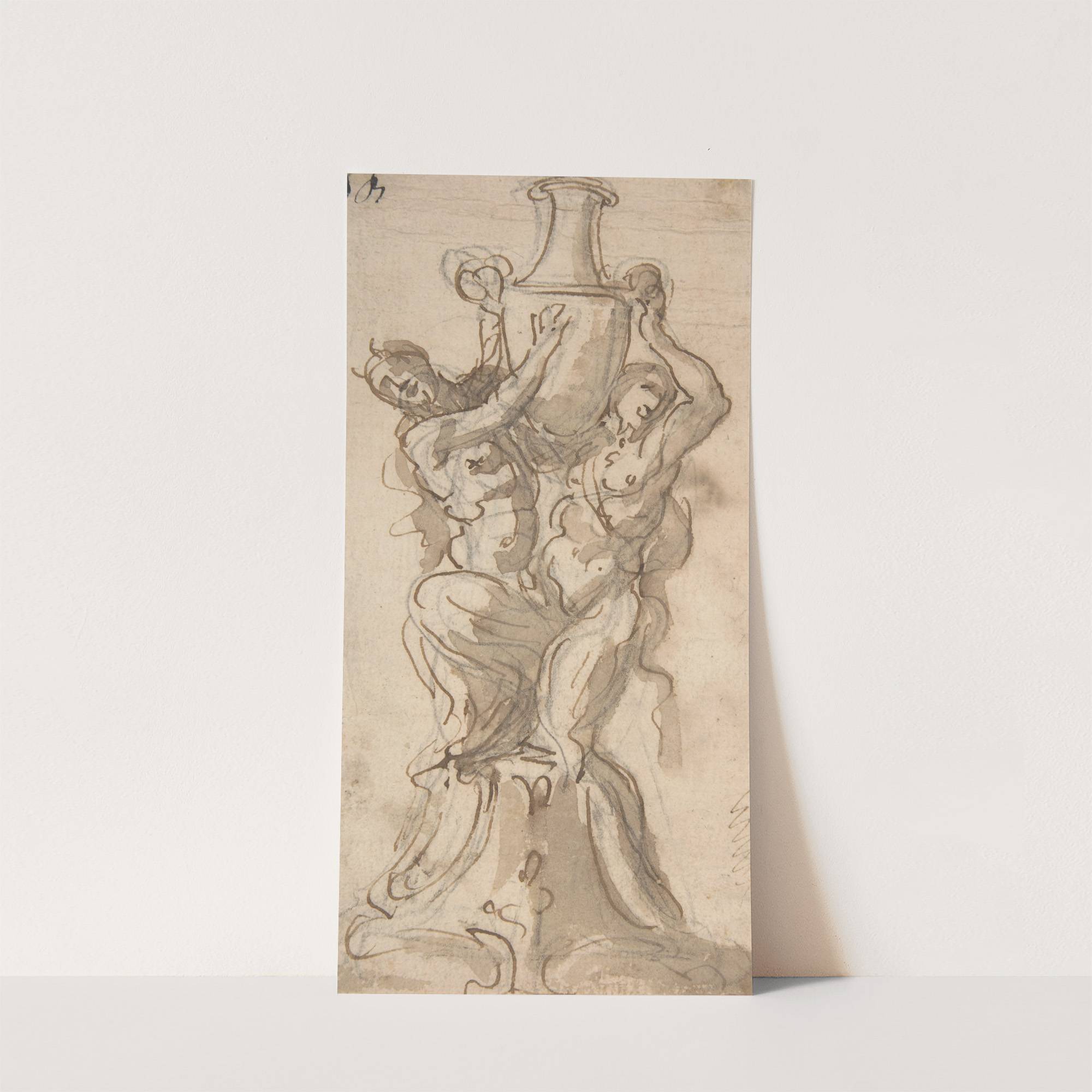 Design for a Statue consisting of a Satyr and Satyress Lifting a Vase by Giovanni Battista Foggini - Wall Art Print