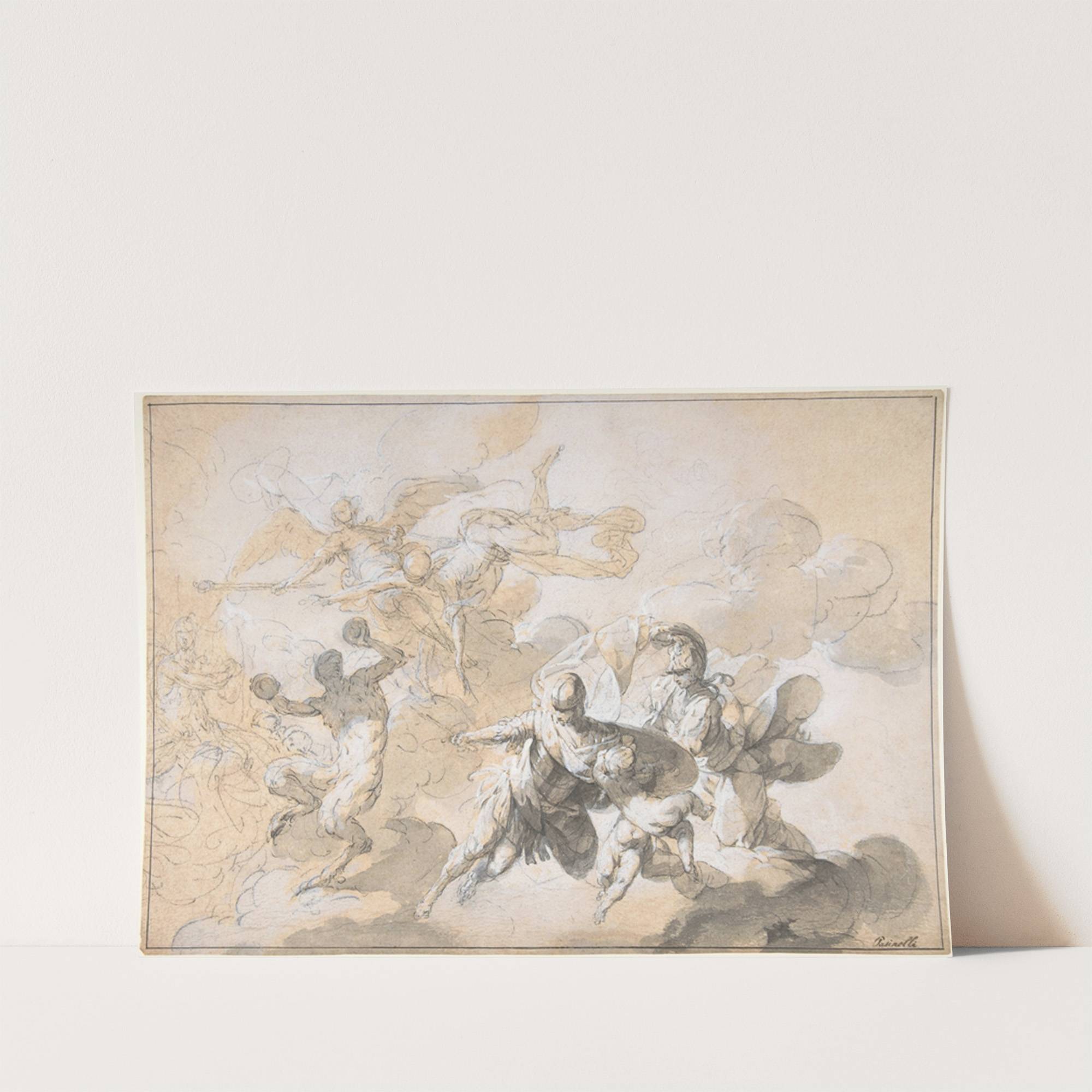 Ceiling Decoration with Mars, Minerva, and a Dancing Satyr by Giovanni Domenico Ferretti - Wall Art Print