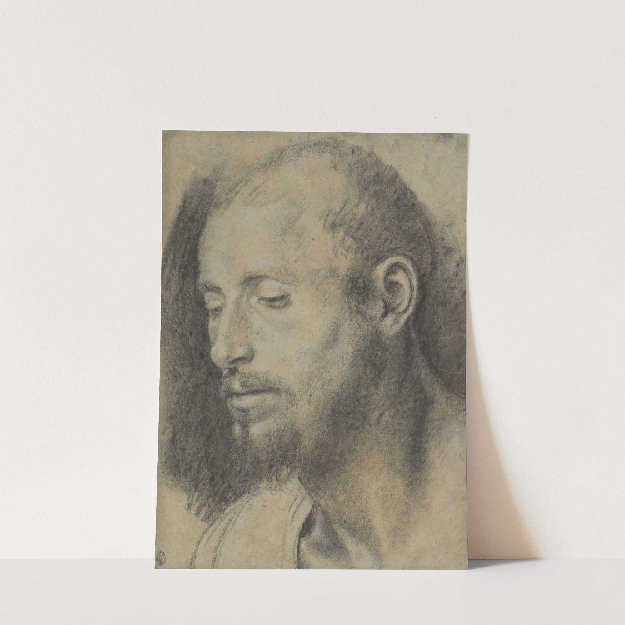 This captivating art print features "Study of the Head of a Bearded Man" by Giovanni Girolamo Savoldo, rendered in exquisite monochromatic hues. The artist masterfully captures the gentle, contemplative expression of a bearded man, whose downcast eyes and relaxed demeanor...