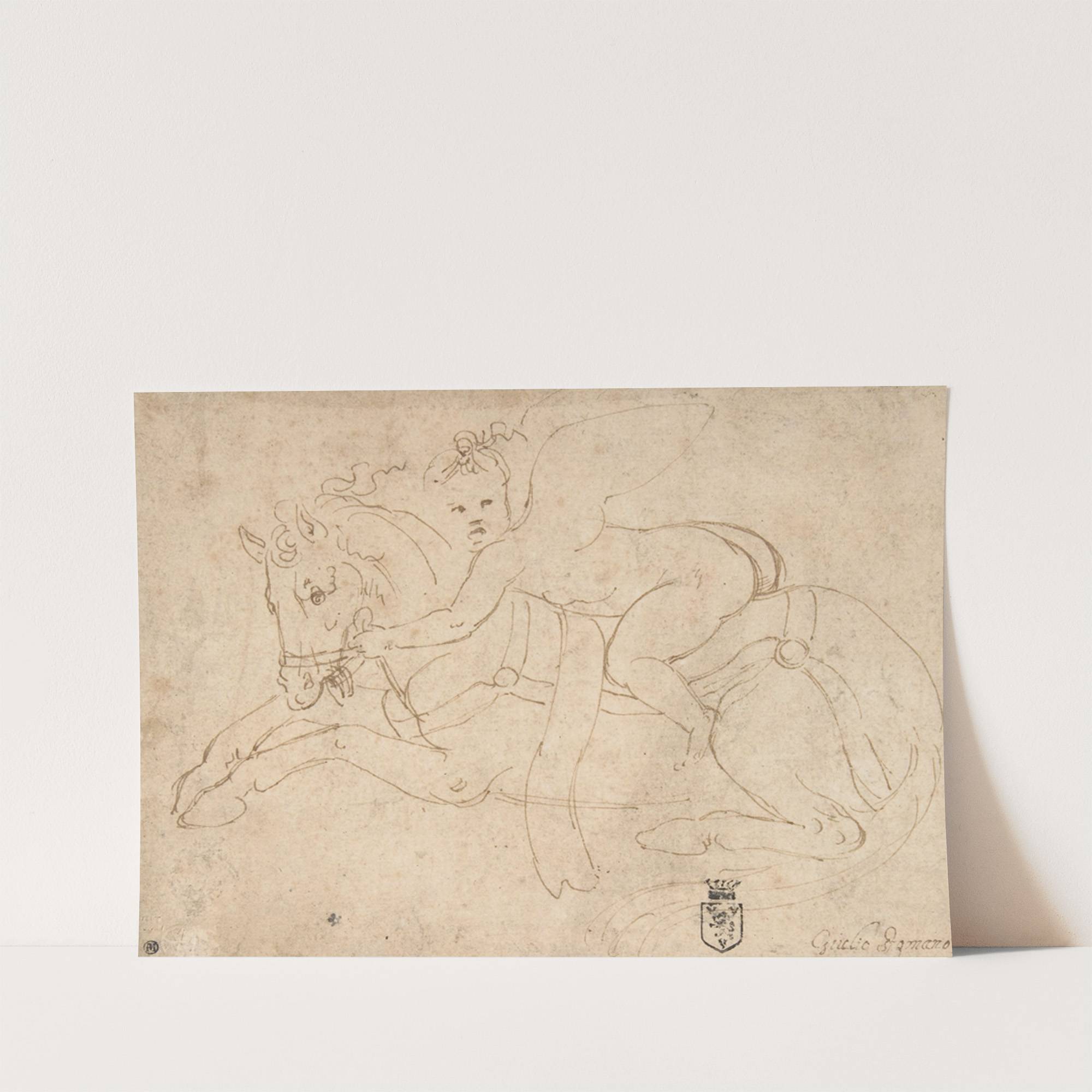 Winged Infant Riding a Crouching Horse by Giulio Romano  - Wall Art Print