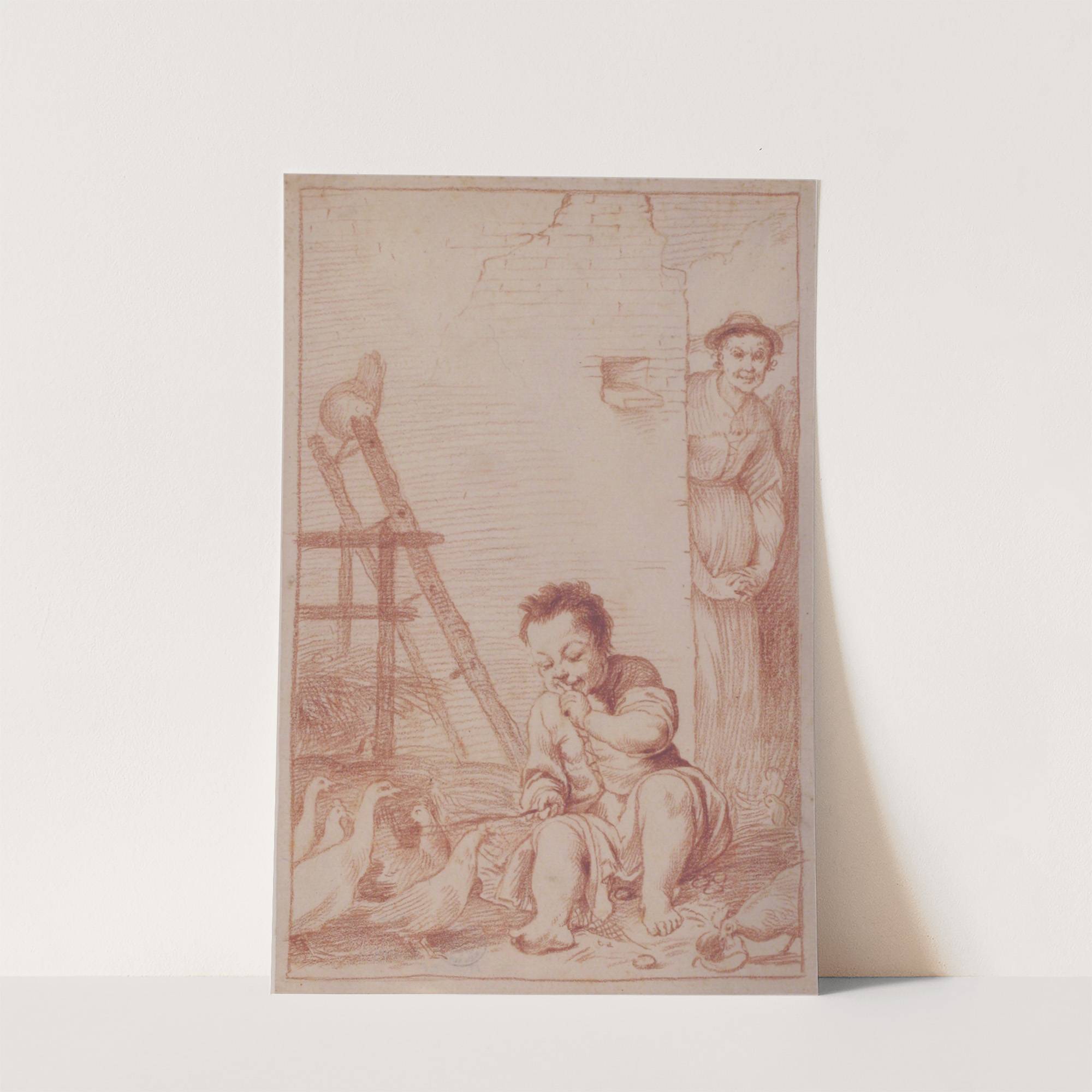 Marcolfa Discovers BertoldinoTrying to Hatch Eggs by Giuseppe Maria Crespi - Wall Art Print