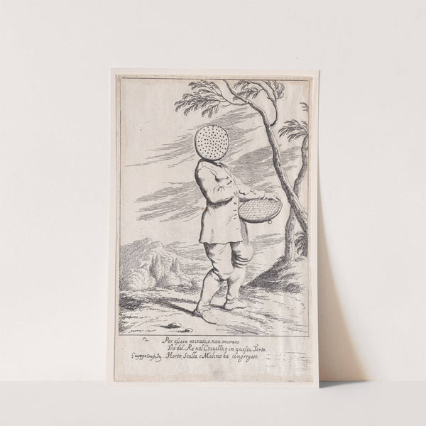 Plate 2; Bertoldo holding a tart in his hand and wearing a sieve on his head (1705–1715) by Giuseppe Maria Crespi - Wall Art Print