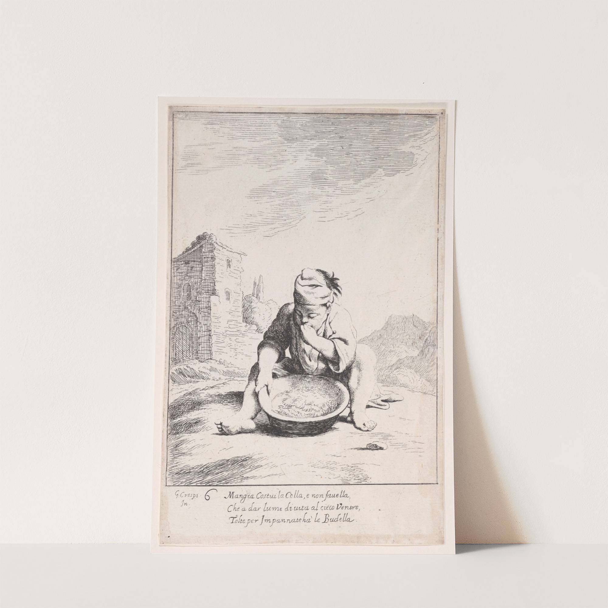 Plate 20; Cacasenno eating a bowl of pasta (1705–1715) by Giuseppe Maria Crespi - Wall Art Print