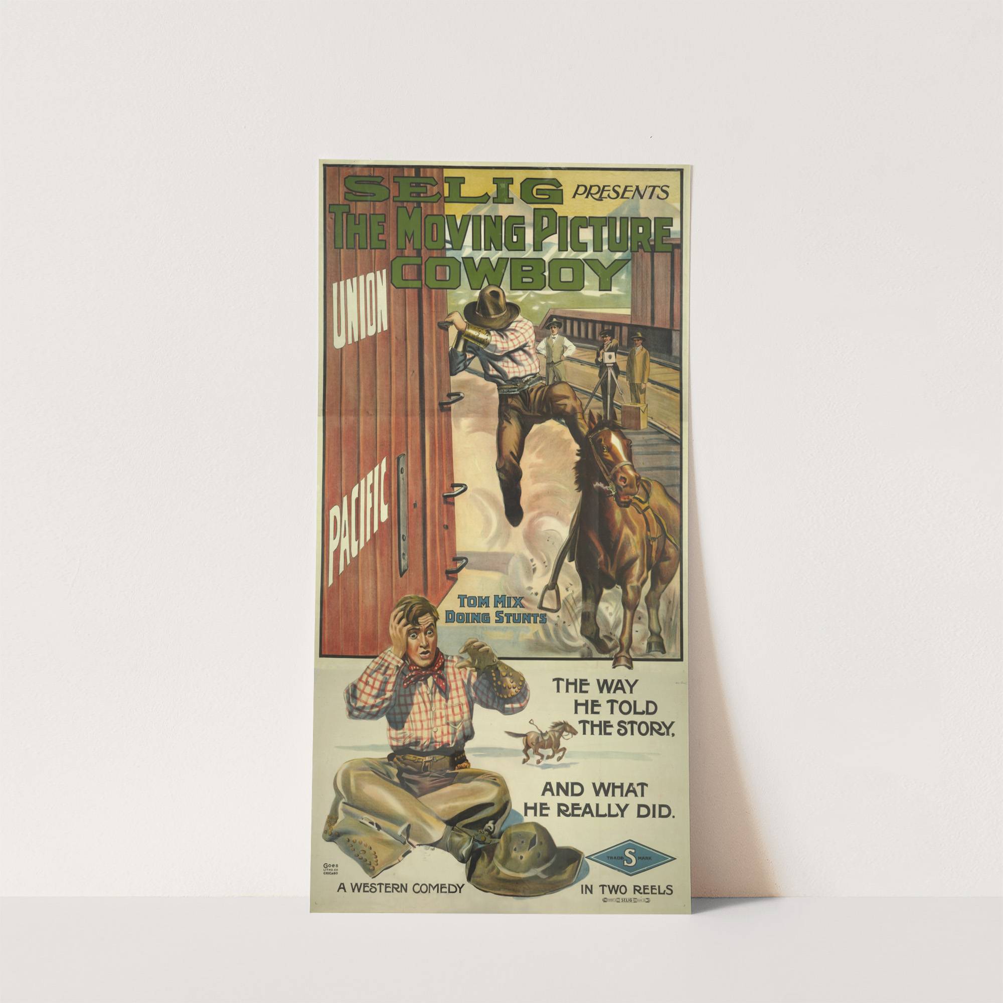 The Moving Picture Cowboy Tom Mix doing stunts. The way he told the story, and what he really did. (1914) by Goes Litho. Co. - Wall Art Print