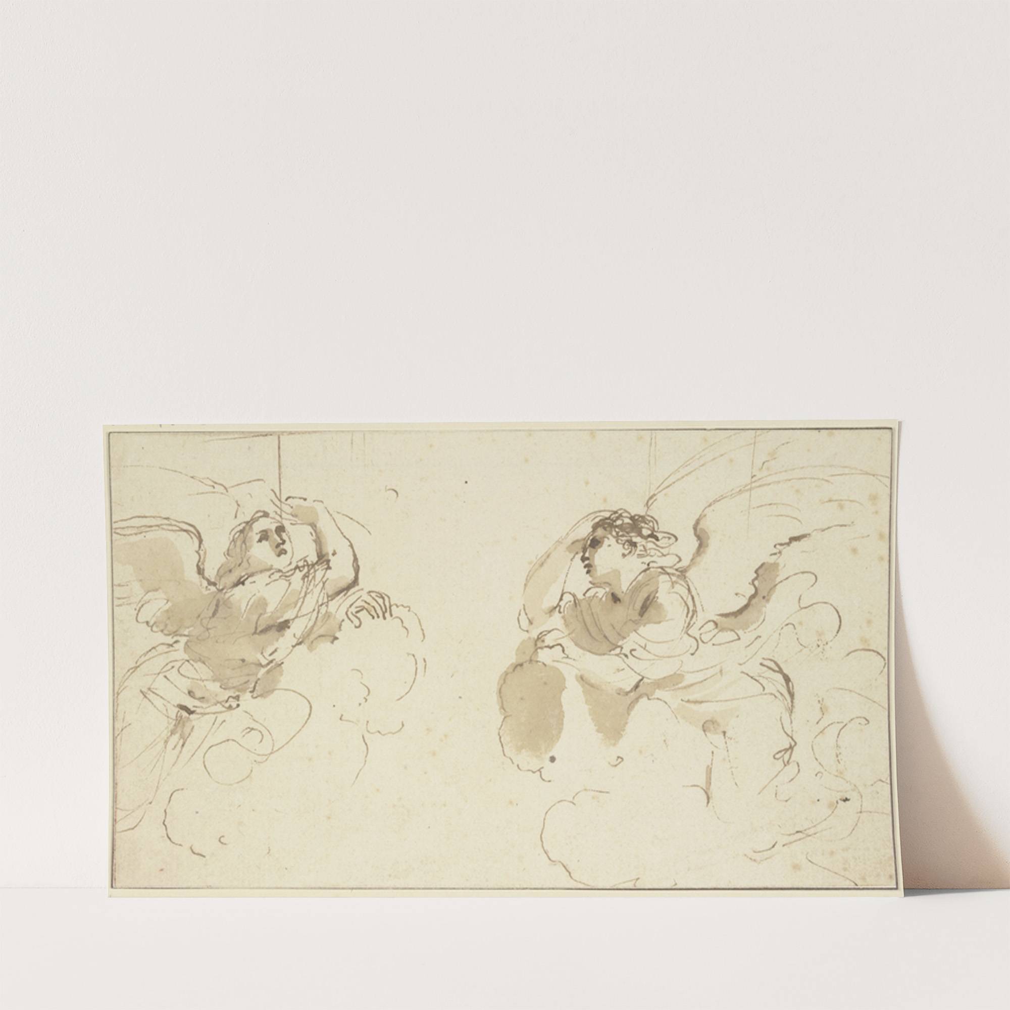 Two angels in clouds by Guercino - Wall Art Print