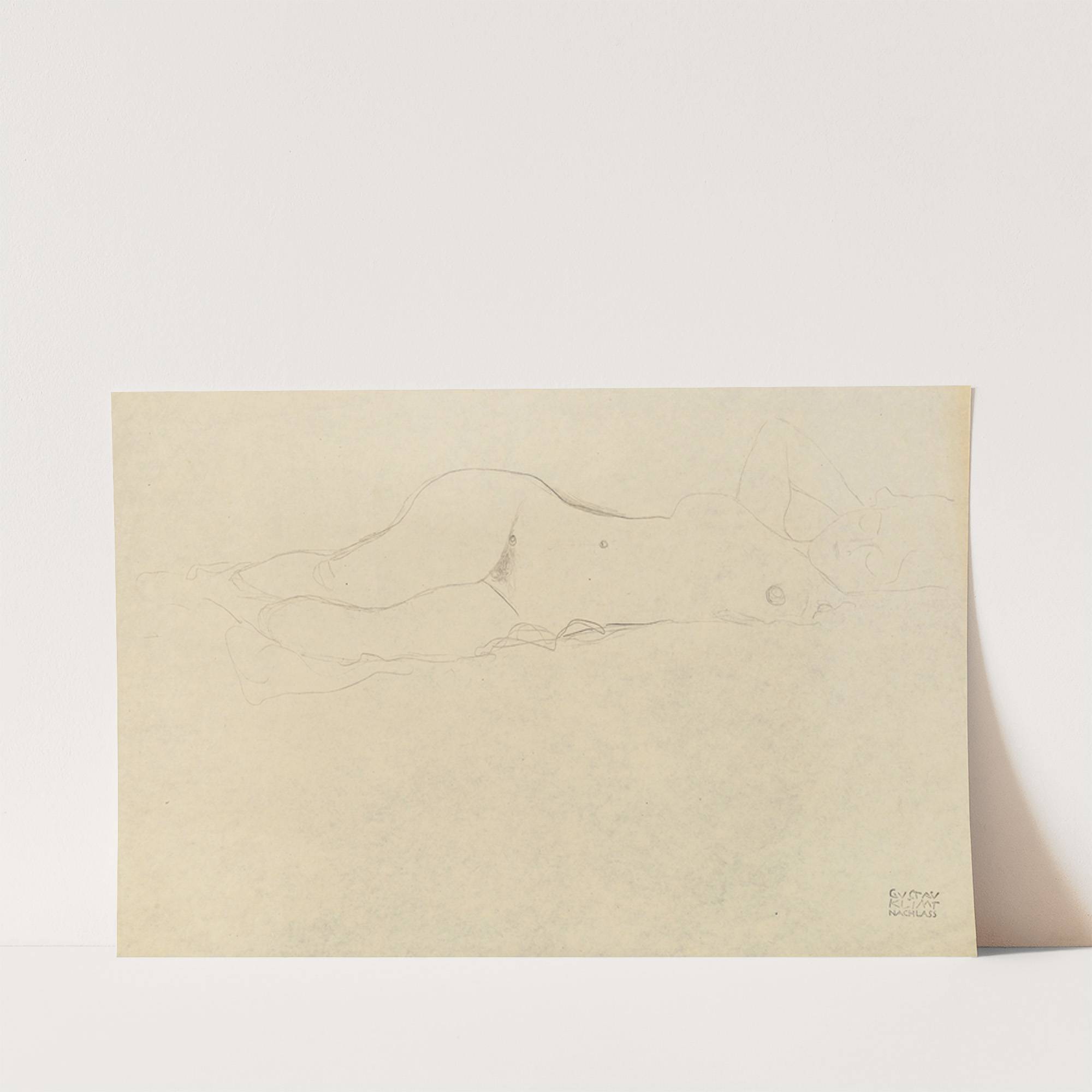 Reclining female nude with her hands behind her head by Gustav Klimt - Wall Art Print