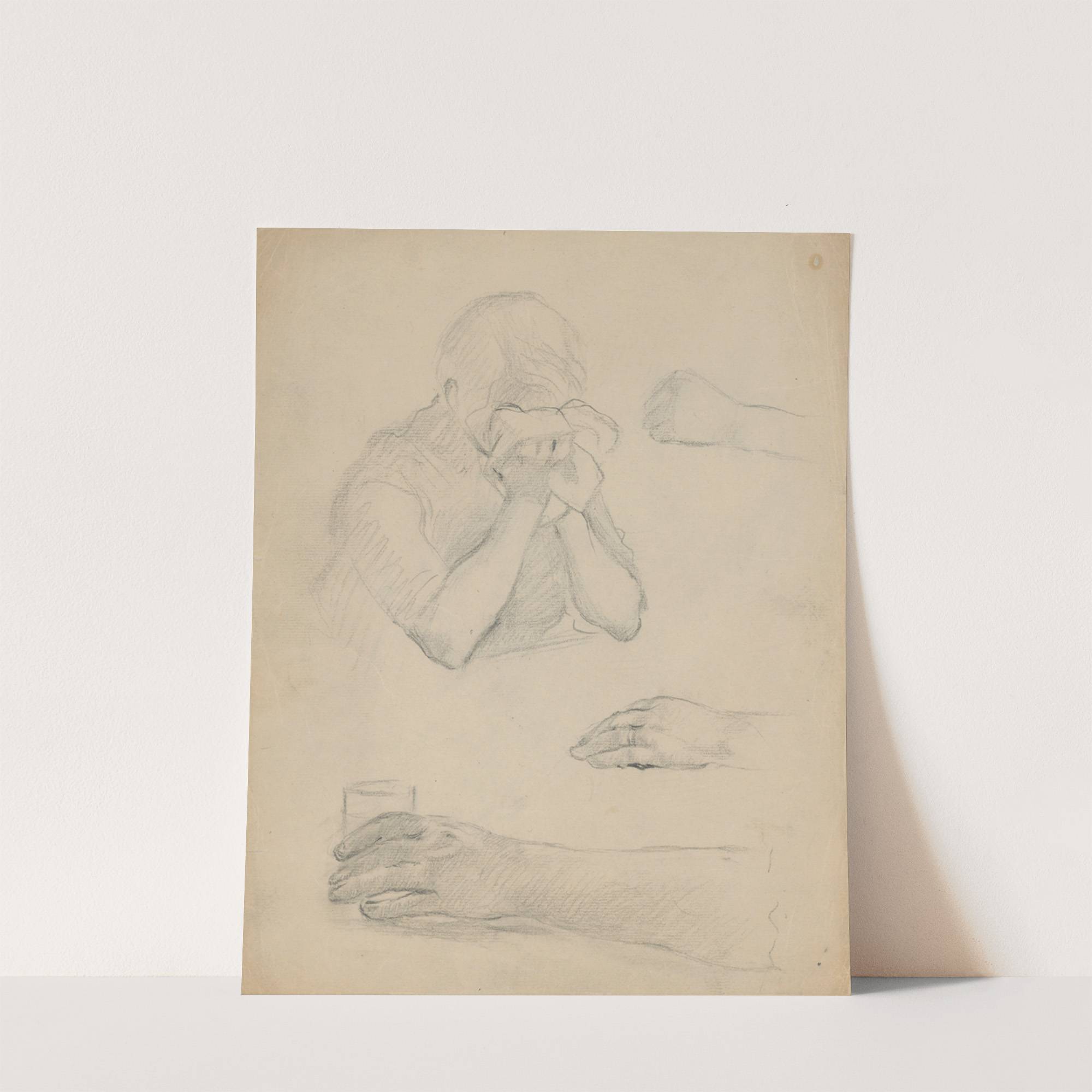 Sketch of Crying Woman and Detailed Hands Study by Gustáv Mallý - Wall Art Print