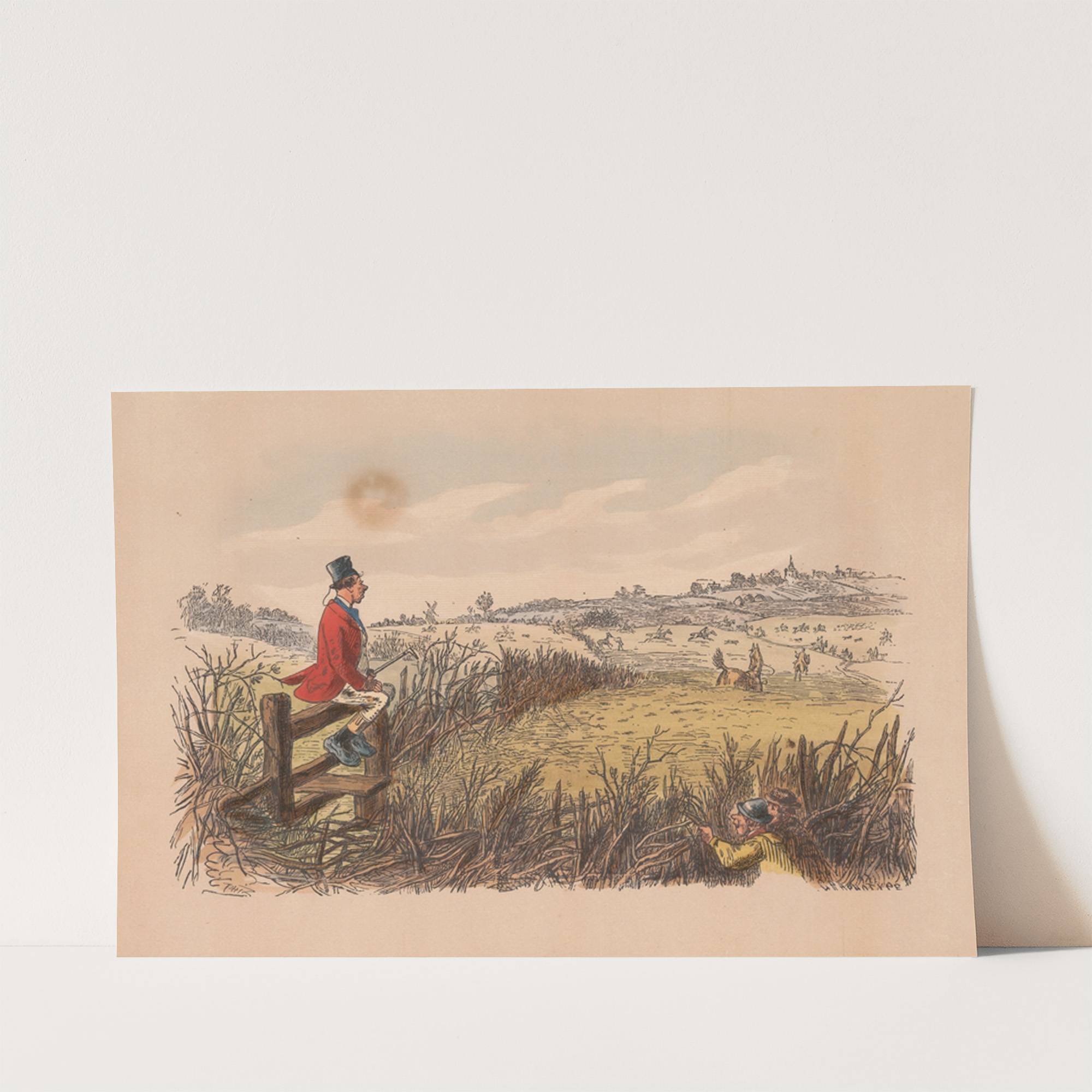 Fox-Hunting Sketches; No. 7. ‘The very best run of the season’ – and Tommy Dumphty has a capital view of it by Hablot Knight Browne - Wall Art Print