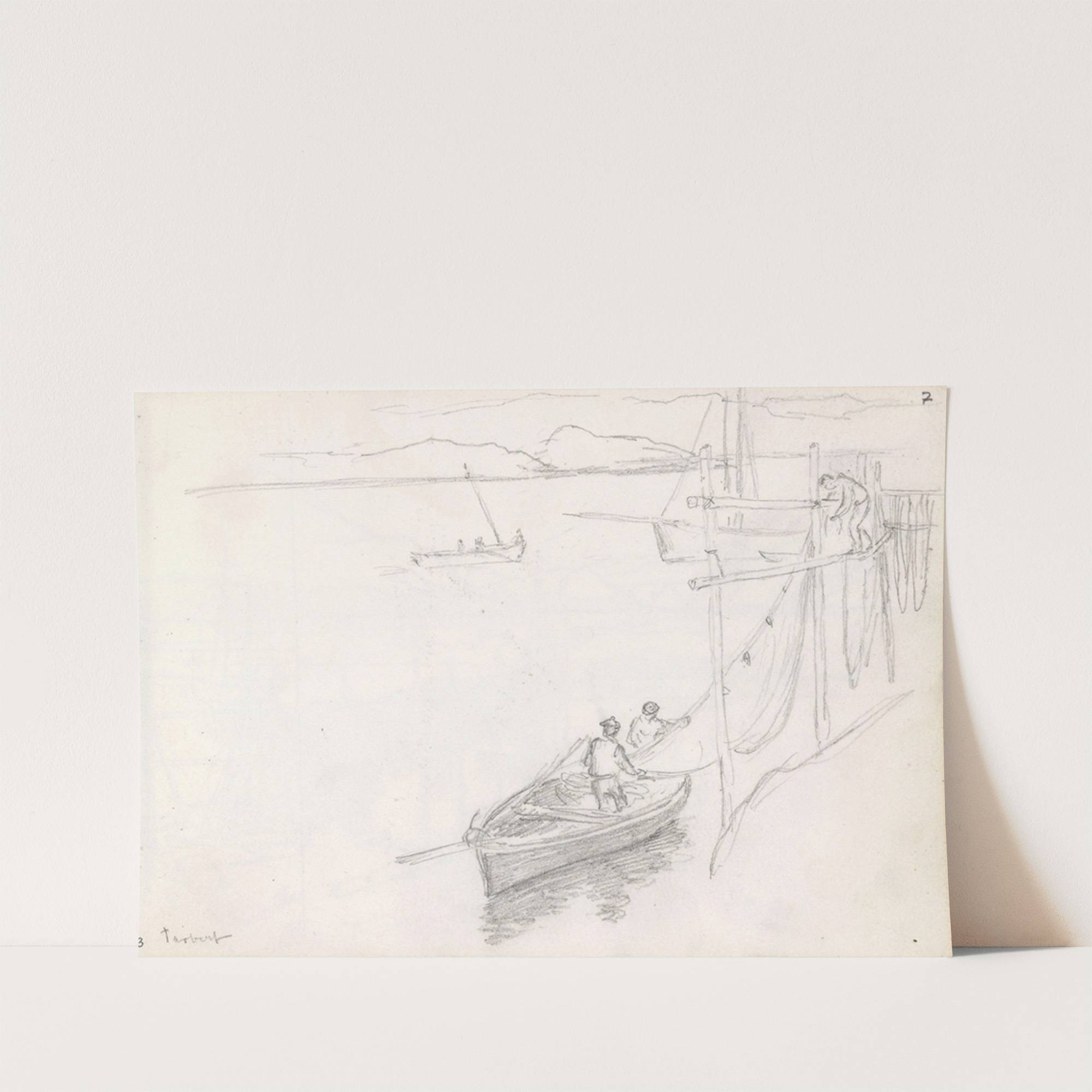 Fishing boat by shore, Tarbert by Hans Gude - Wall Art Print