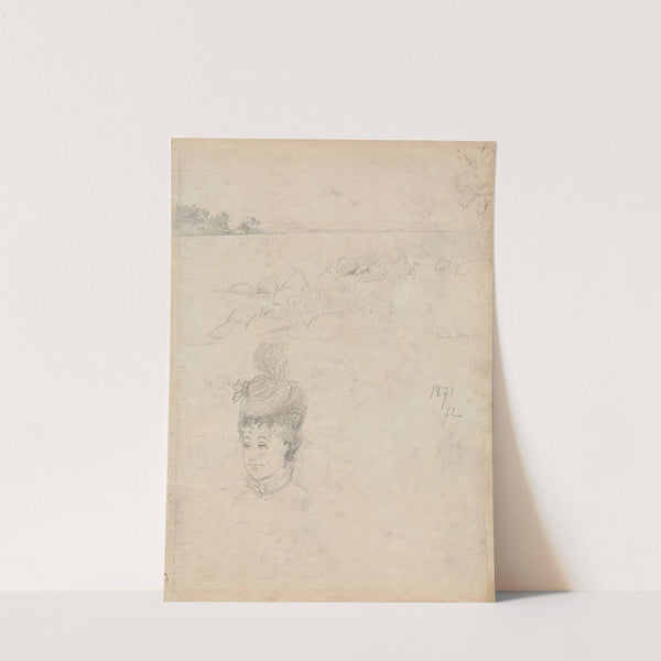Fra Ormøya; kvinnehode by Hans Gude - Wall Art Print