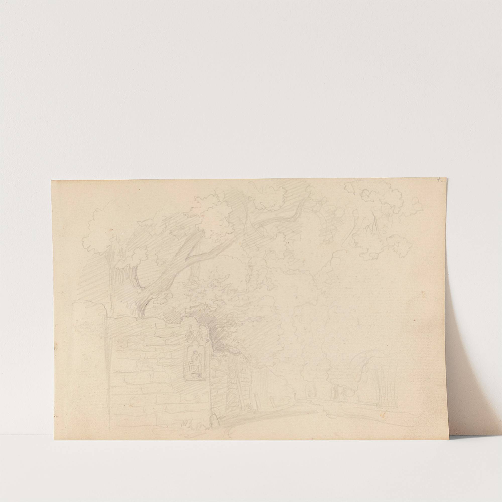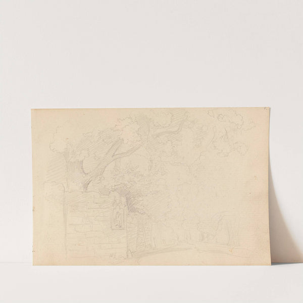 Gate med trær og hagemur (1857) by Hans Gude - Wall Art Print