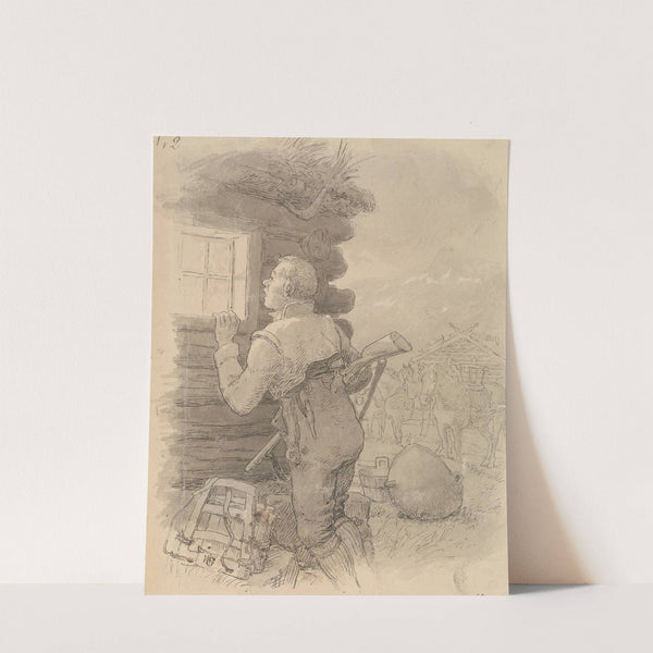He glanced over a window and peered inside (1878) by Hans Gude - Wall Art Print