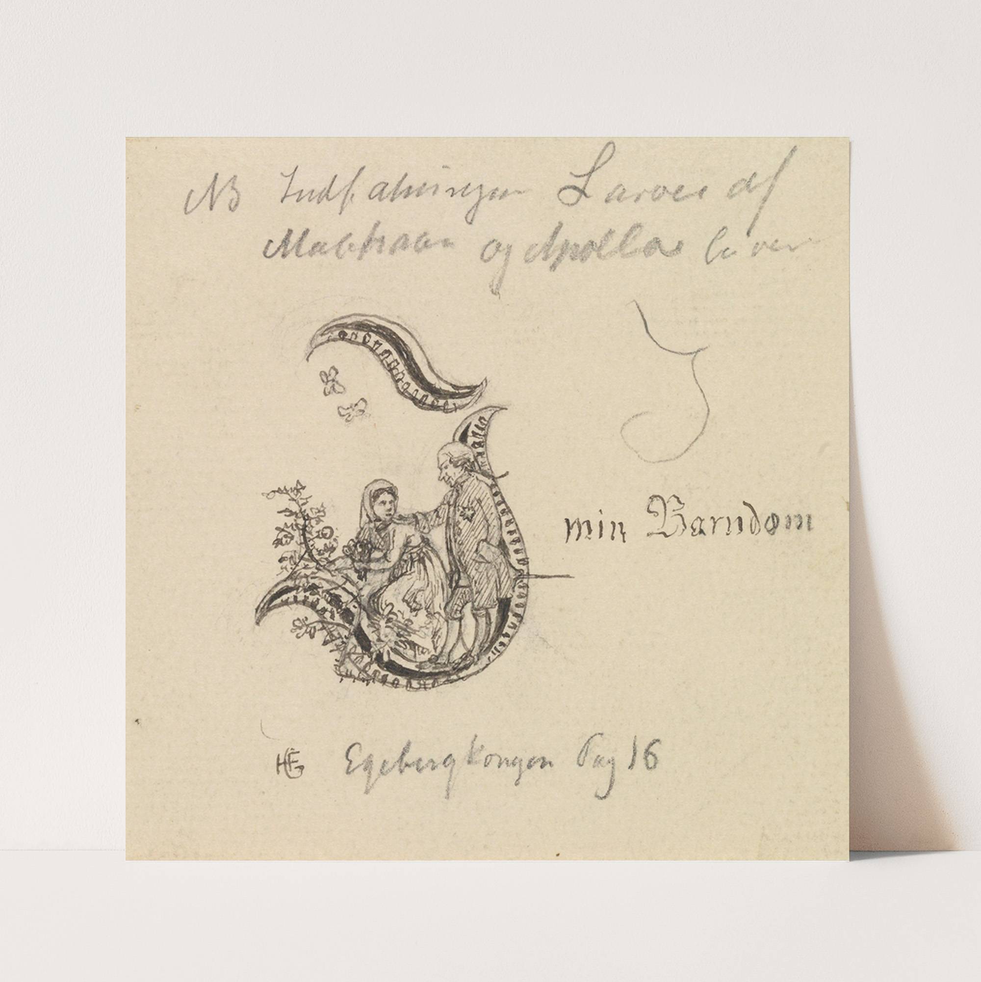 Initial til ‘Egebergkongen’ (1878) by Hans Gude - Wall Art Print