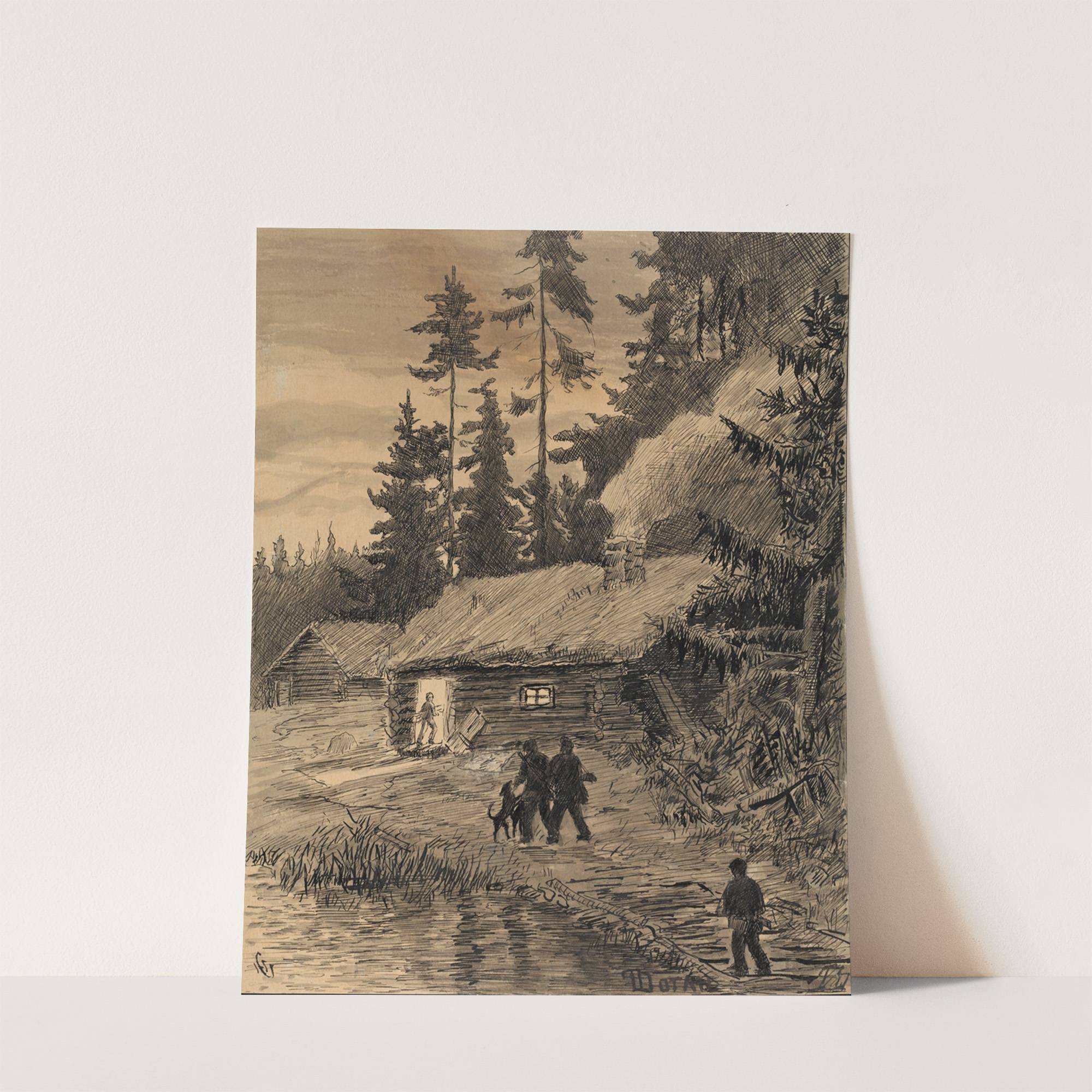 Jegere på hjemvei by Hans Gude - Wall Art Print