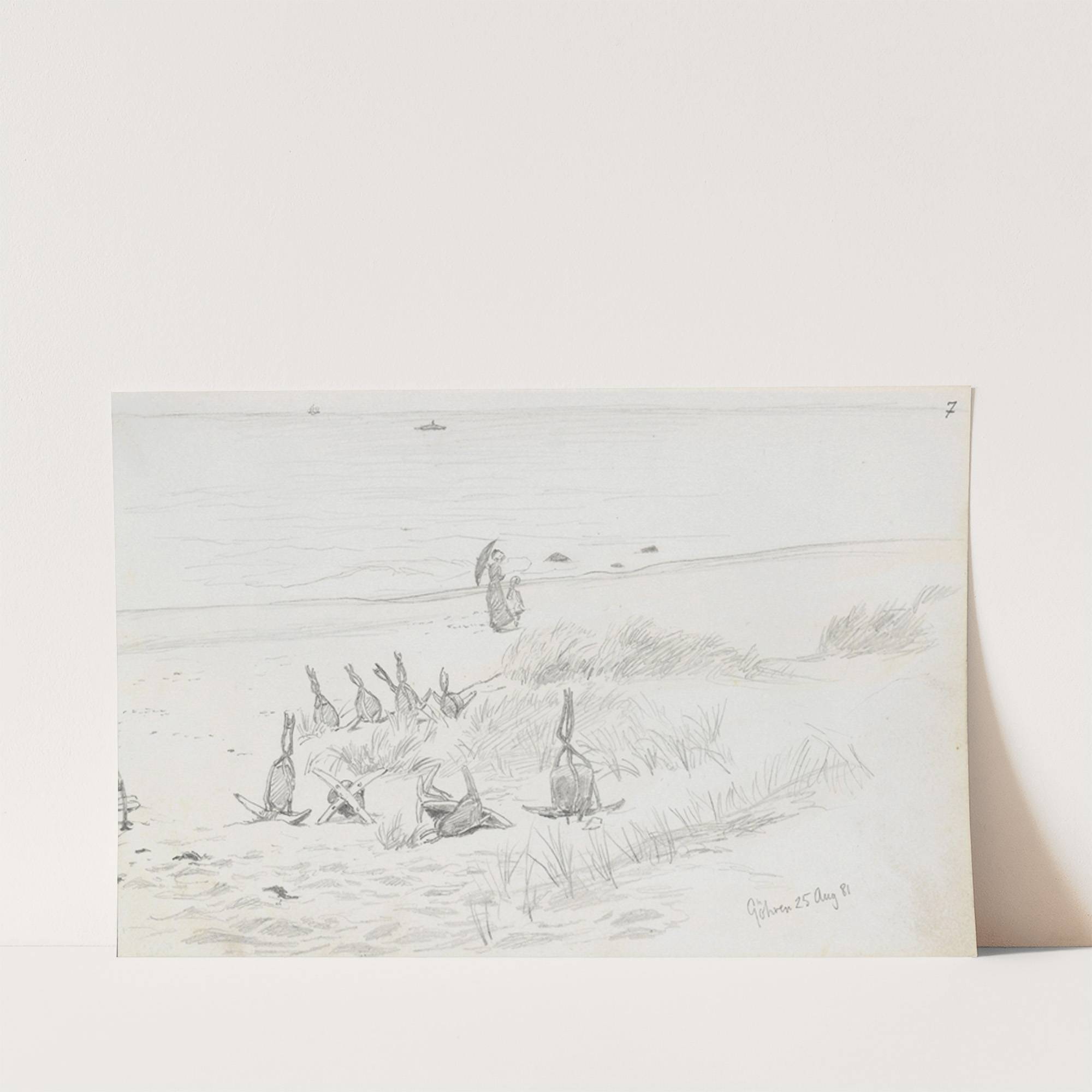 Kvinne med barn og ankere på stranden, Göhren by Hans Gude - Wall Art Print