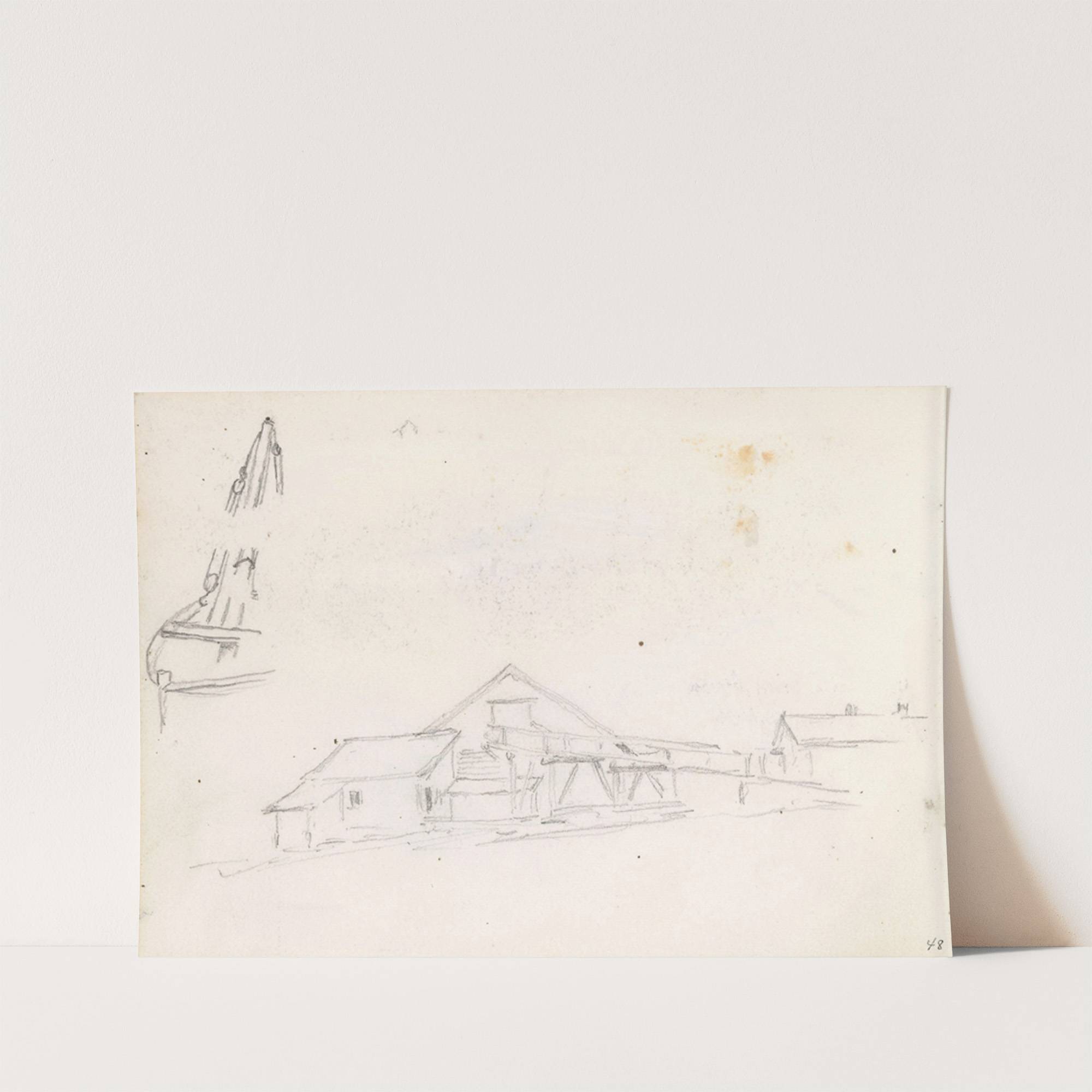 Seilbåt; gårdsbygninger by Hans Gude - Wall Art Print