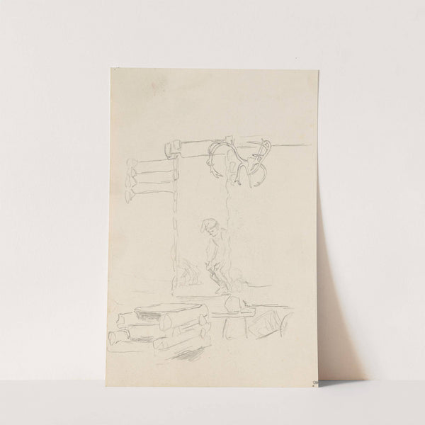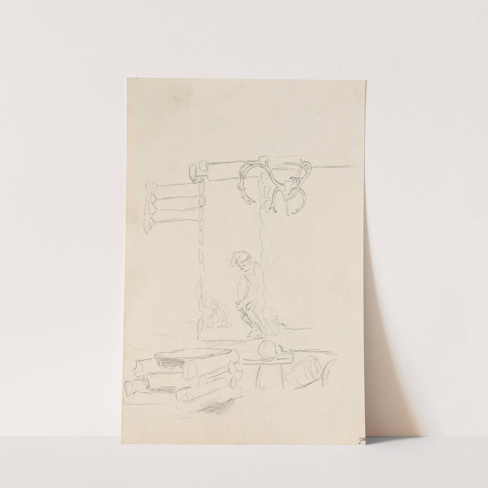 Stueinteriør med mannsfigur (1873) by Hans Gude - Wall Art Print