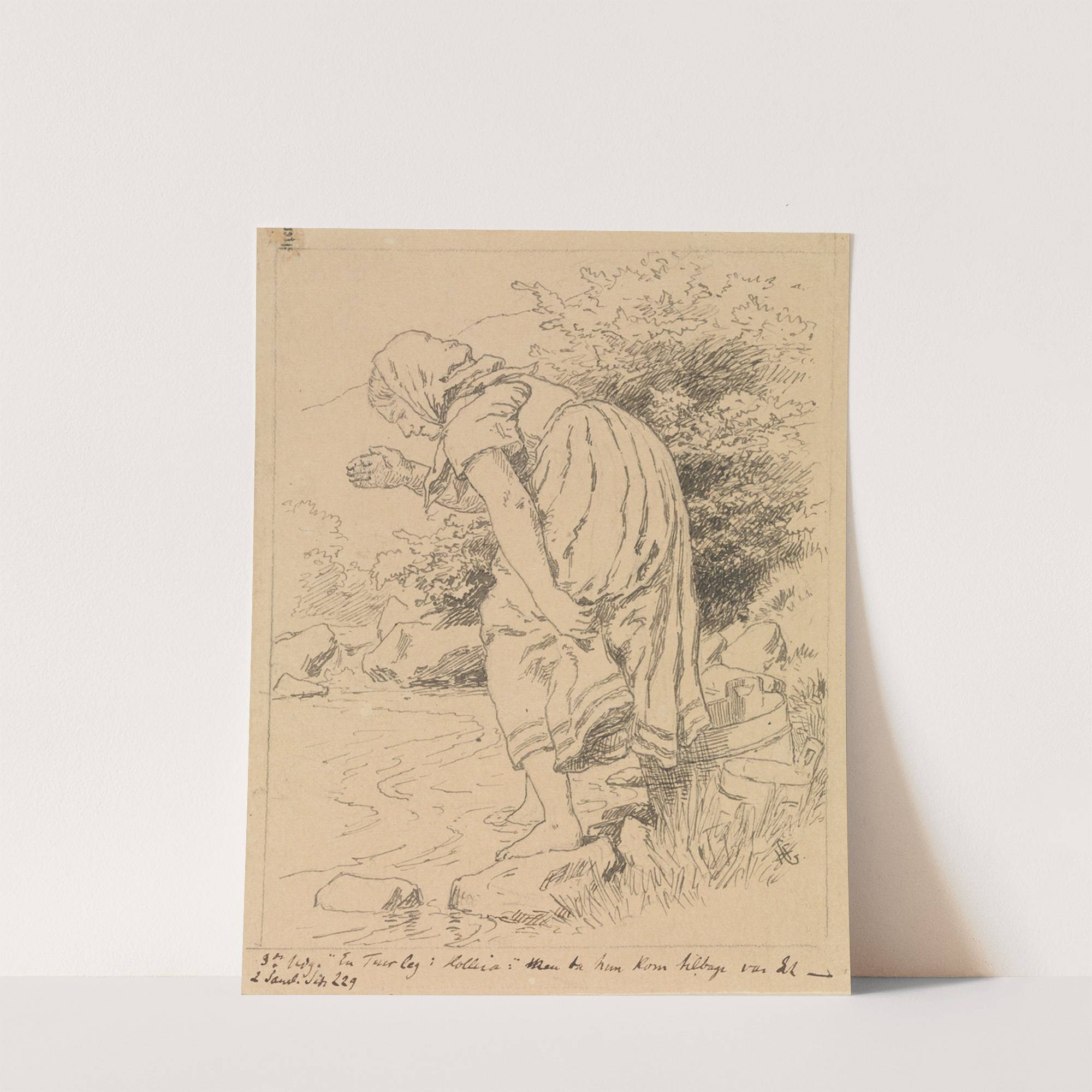 Tidlig en morrå ved Sankthansdags leite skylte hun klær neri bekken (1878) by Hans Gude - Wall Art Print