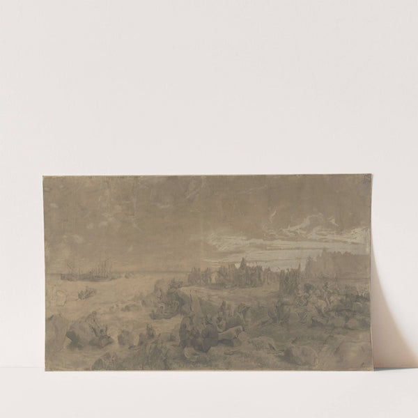 Vikings setting up a Memorial Stone to the Fallen (1857-1858) by Hans Gude - Wall Art Print