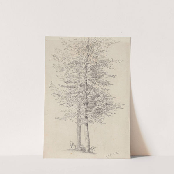 Goat Grazing near Two Trees (1858) by Hans Thoma - Wall Art Print