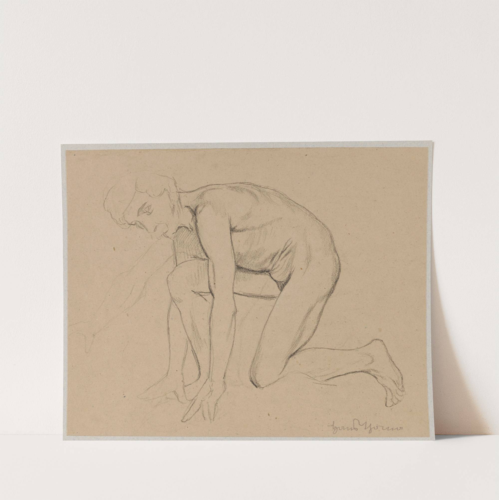 Male Nude with Moustache, Kneeling, in Profile (1880 - 1890) by Hans Thoma - Wall Art Print