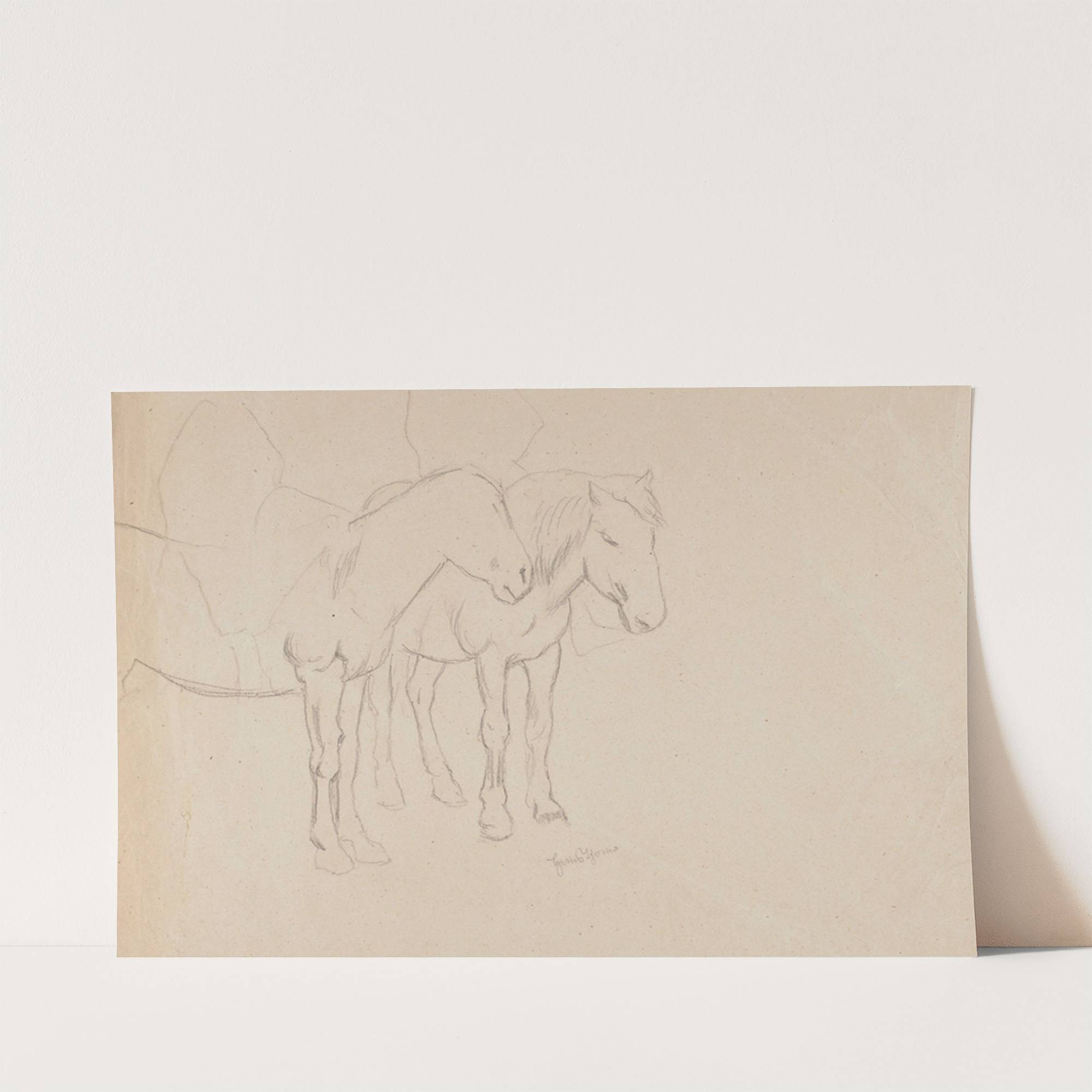 Pair of Horses (1880 - 1920) by Hans Thoma - Wall Art Print