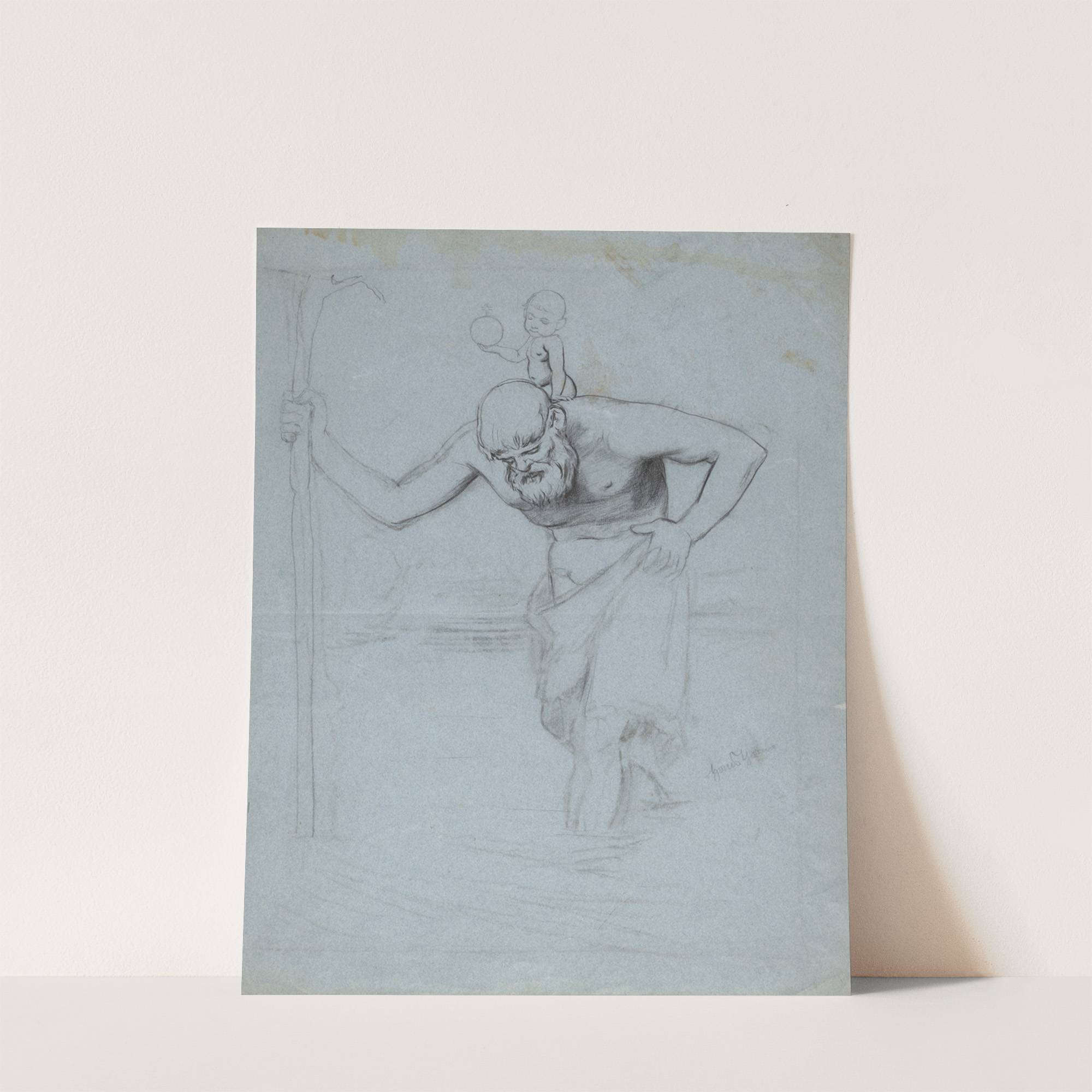 Saint Christopher with the Child Jesus on his Shoulders (1916) by Hans Thoma - Wall Art Print