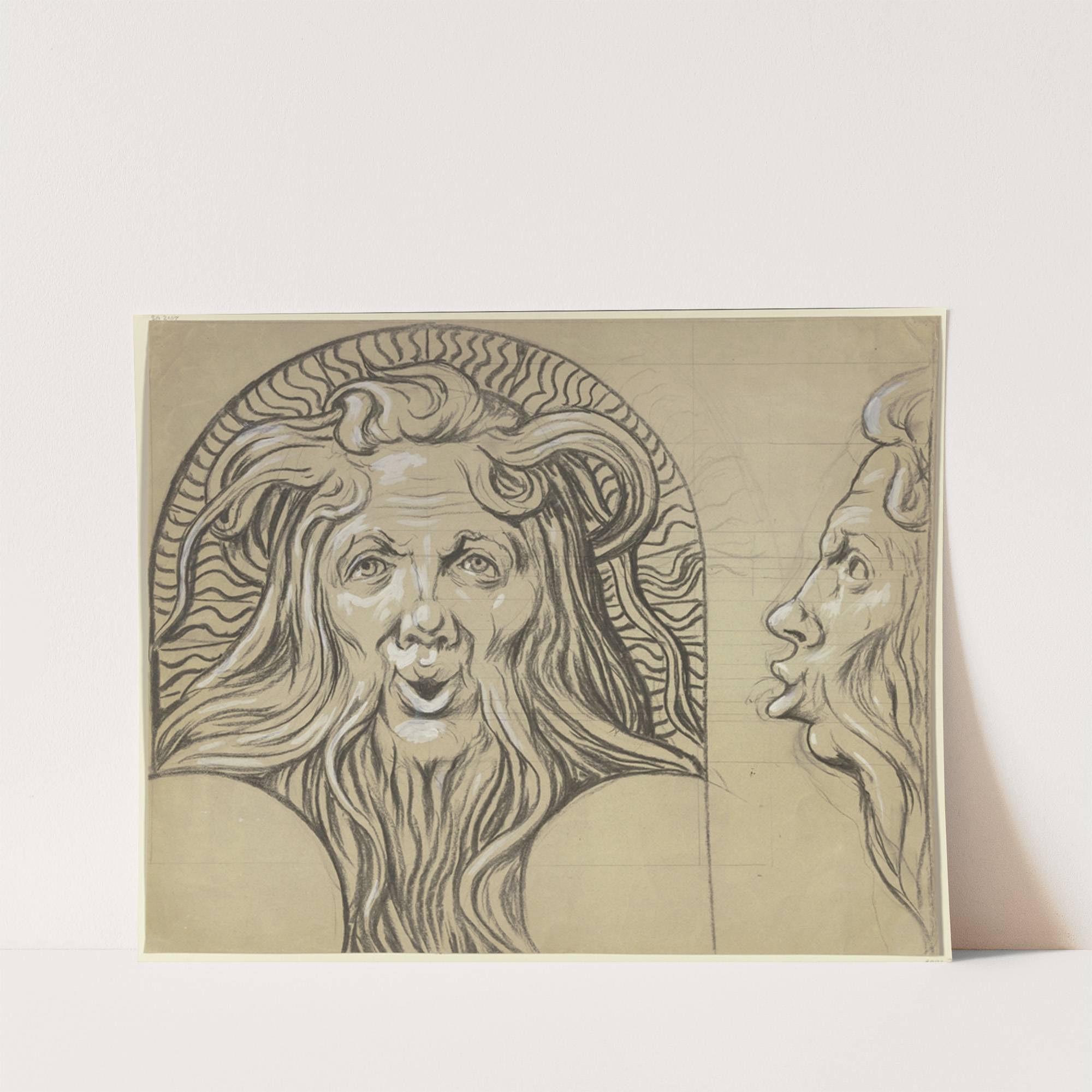 Satyrkopf (Entwurf für einen Majolikabrunnenkopf) by Hans Thoma - Wall Art Print
