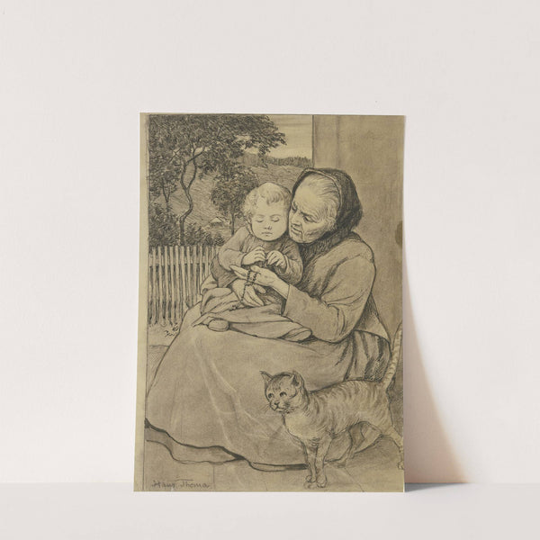 Sitzende alte Frau mit Kind by Hans Thoma - Wall Art Print