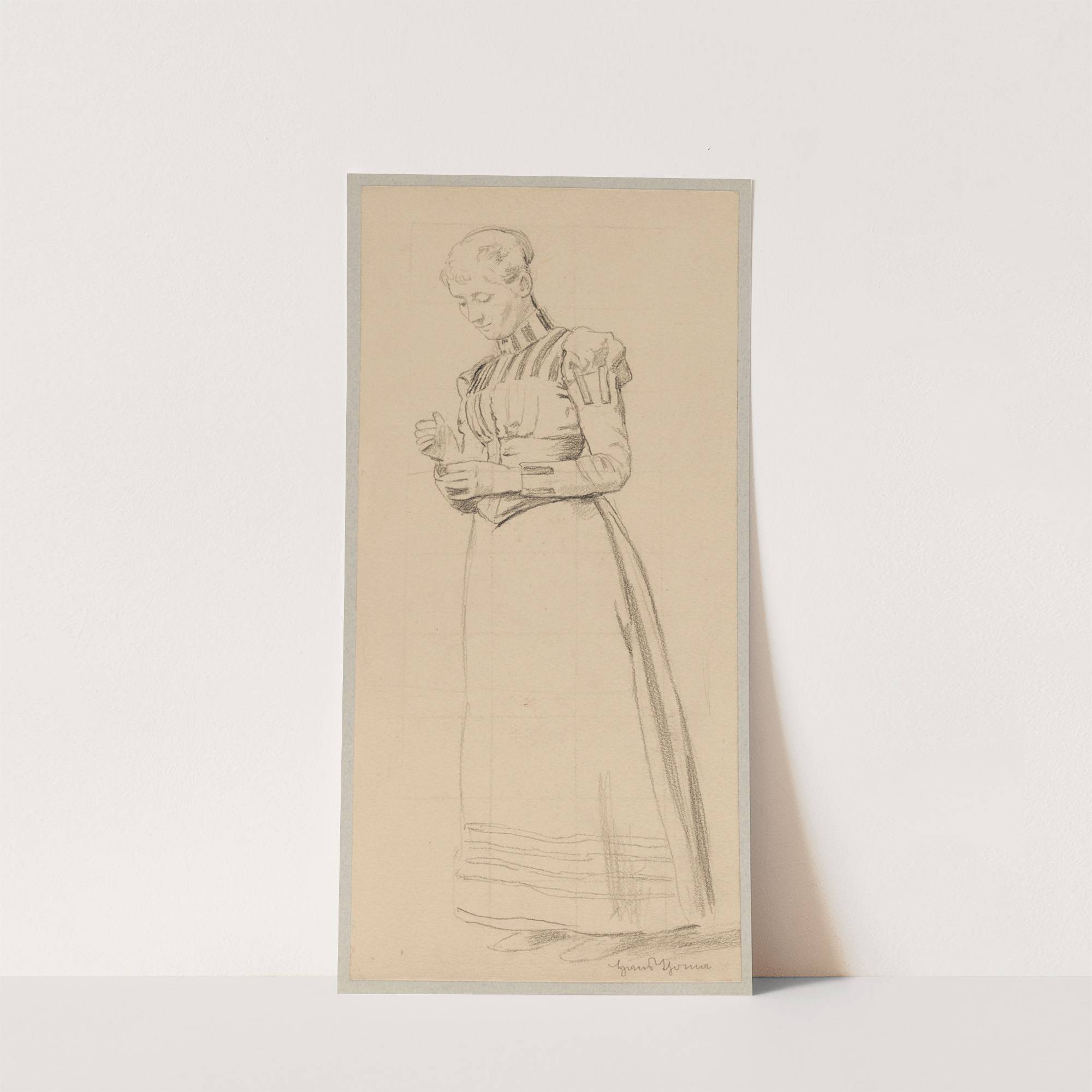 Sketch of a Woman in a Long Dress with Tilted Head (1865 - 1924) by Hans Thoma - Wall Art Print