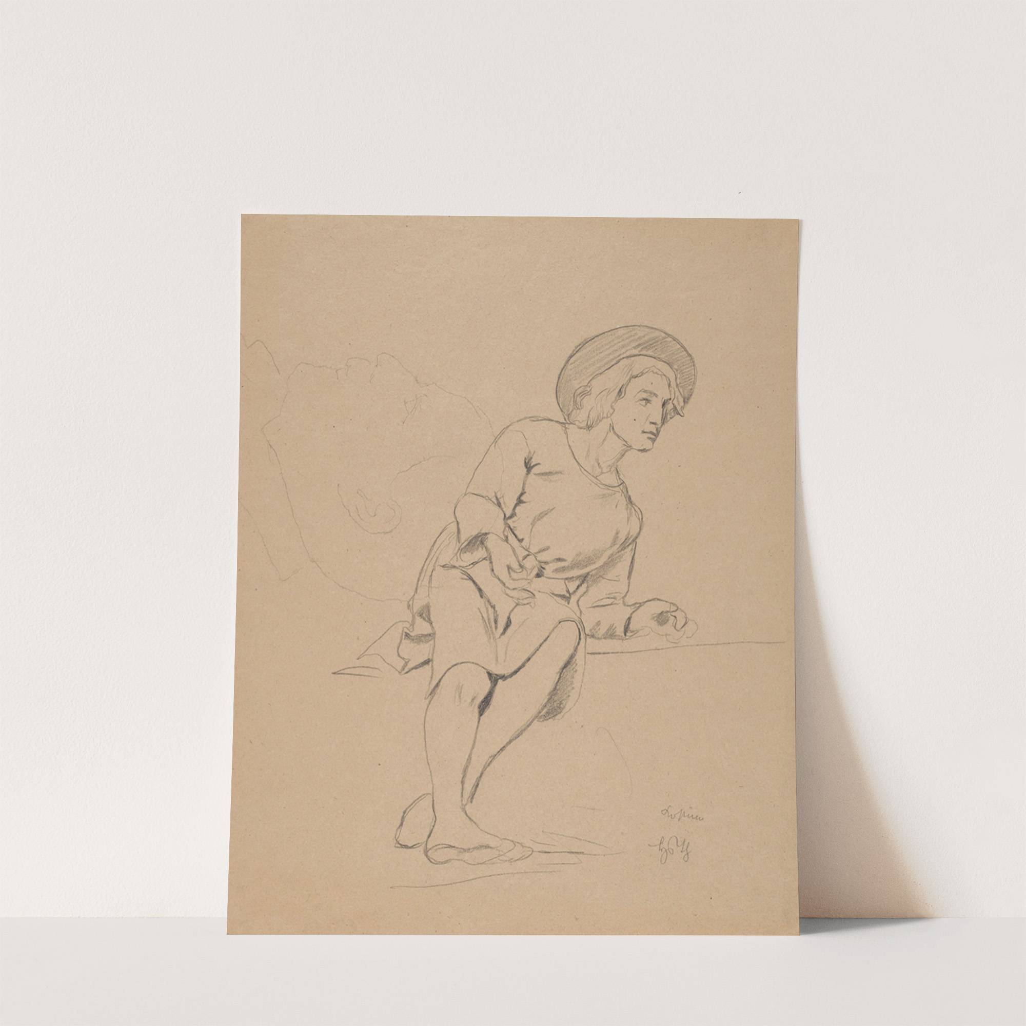 Study of a Sitting Man in a Hat, and a Male Head in Profile (1880) by Hans Thoma - Wall Art Print