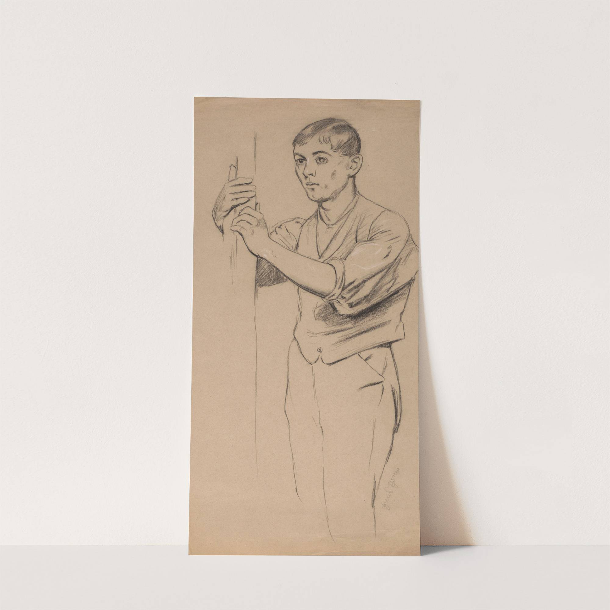 Study of a Young Man Depicted Down to His Knees, Holding a Pole with Both Hands (1901) by Hans Thoma - Wall Art Print