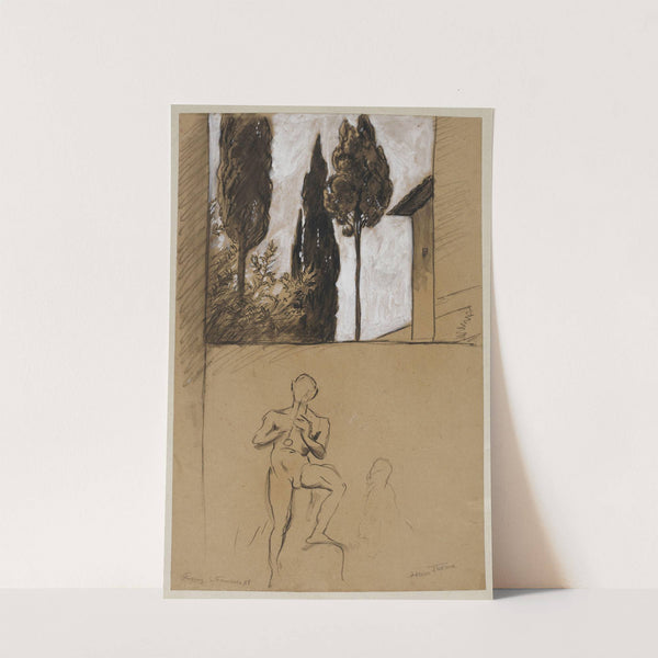 Surroundings of St Francis Monastery in Florence, Outline of a Man Playing the Pipe (1887) by Hans Thoma - Wall Art Print