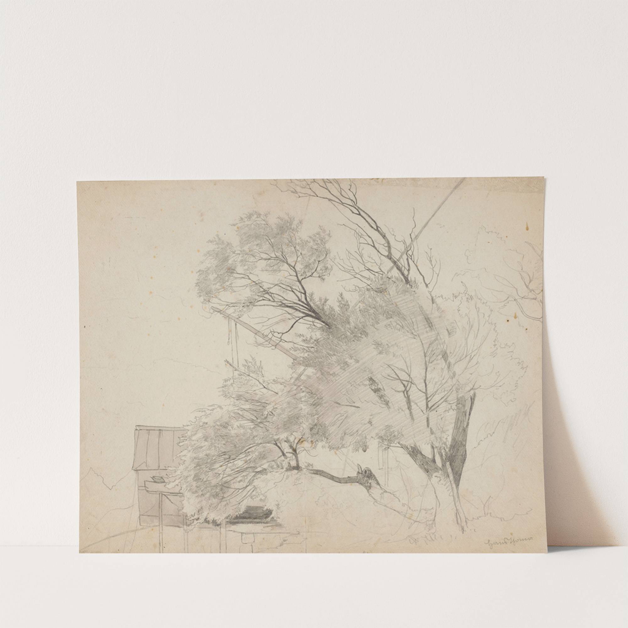 Trees and a Shelter against the Mountains near Bad Säckingen (1869) by Hans Thoma - Wall Art Print