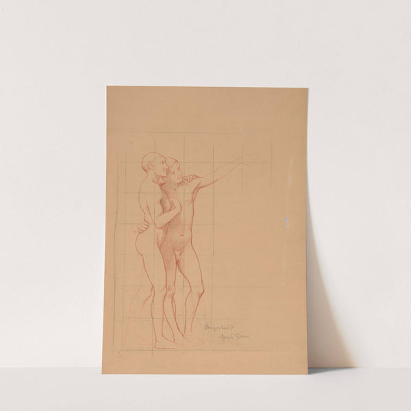 Two Nude Young Men, Embracing Each Other (1890) by Hans Thoma - Wall Art Print