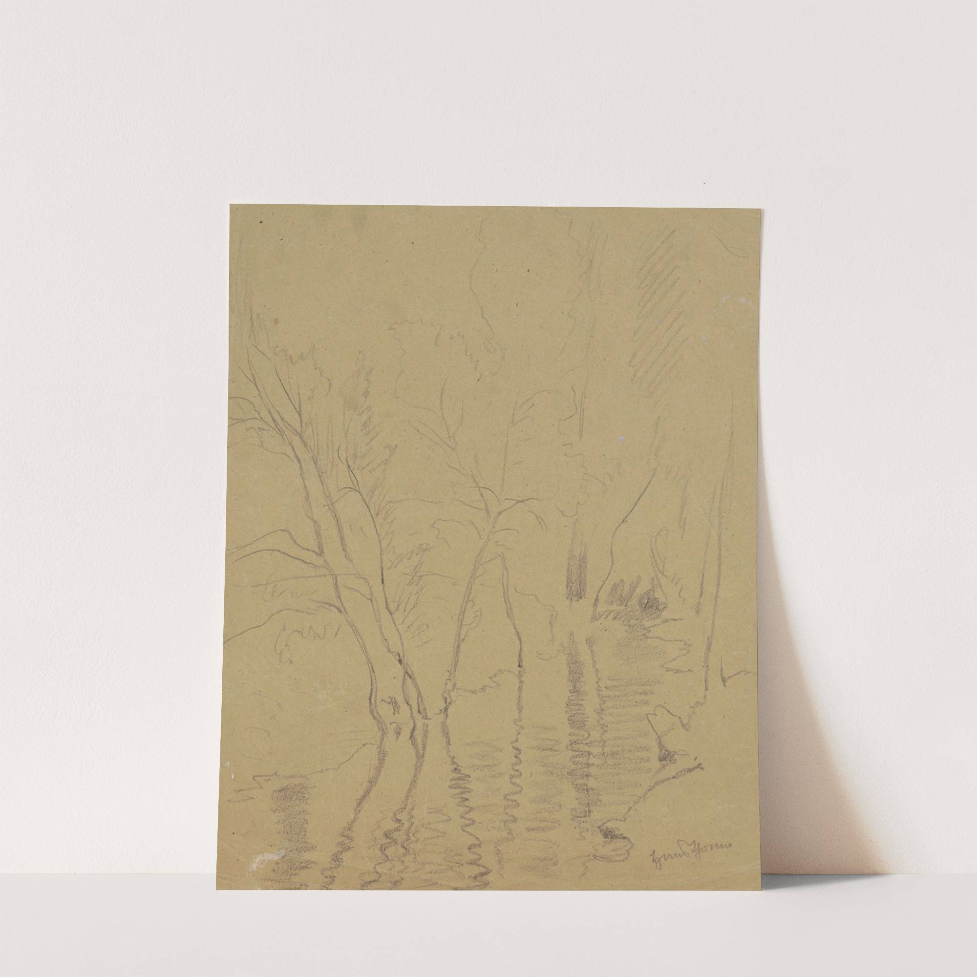 Two trees growing by a river and reflected in the water (1890 - 1900) by Hans Thoma - Wall Art Print