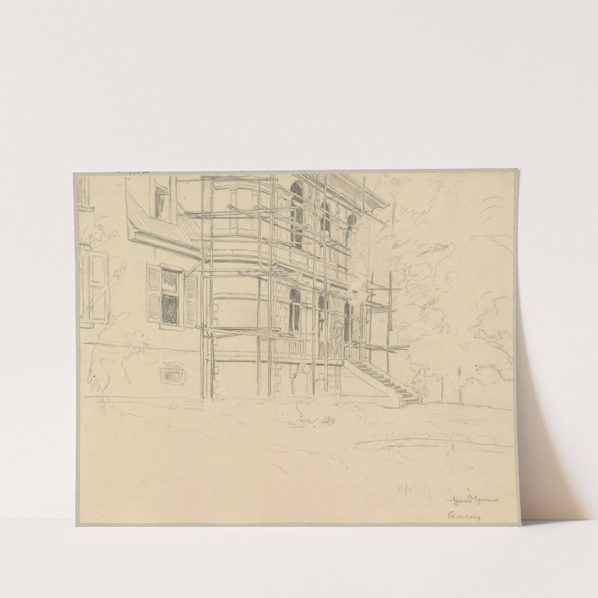 View of a house surrounded by scaffolding in Kronberg, Hesse (1899) by Hans Thoma - Wall Art Print